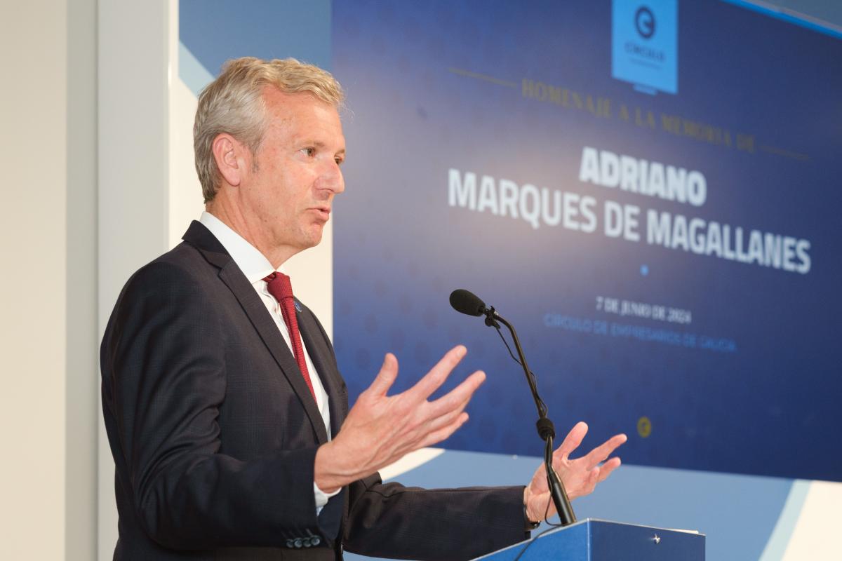 O presidente da Xunta, Alfonso Rueda, destacou hoxe o papel de Adriano Marqués de Magallanes á hora de xerar riqueza e prestixio para Galicia, así como o papel de todos os empresarios como el: “Conseguiu que xente en toda Europa confiase no que facía, o que quere dicir que confiaban en Galicia”, afirmou.
