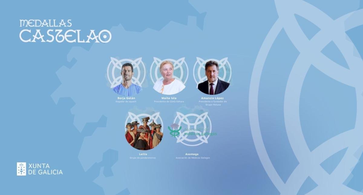 La Xunta concede las Medallas Castelao 2024 a Leilía, Borja Golán, Amancio López Seijas, Maite Isla y Asomega
