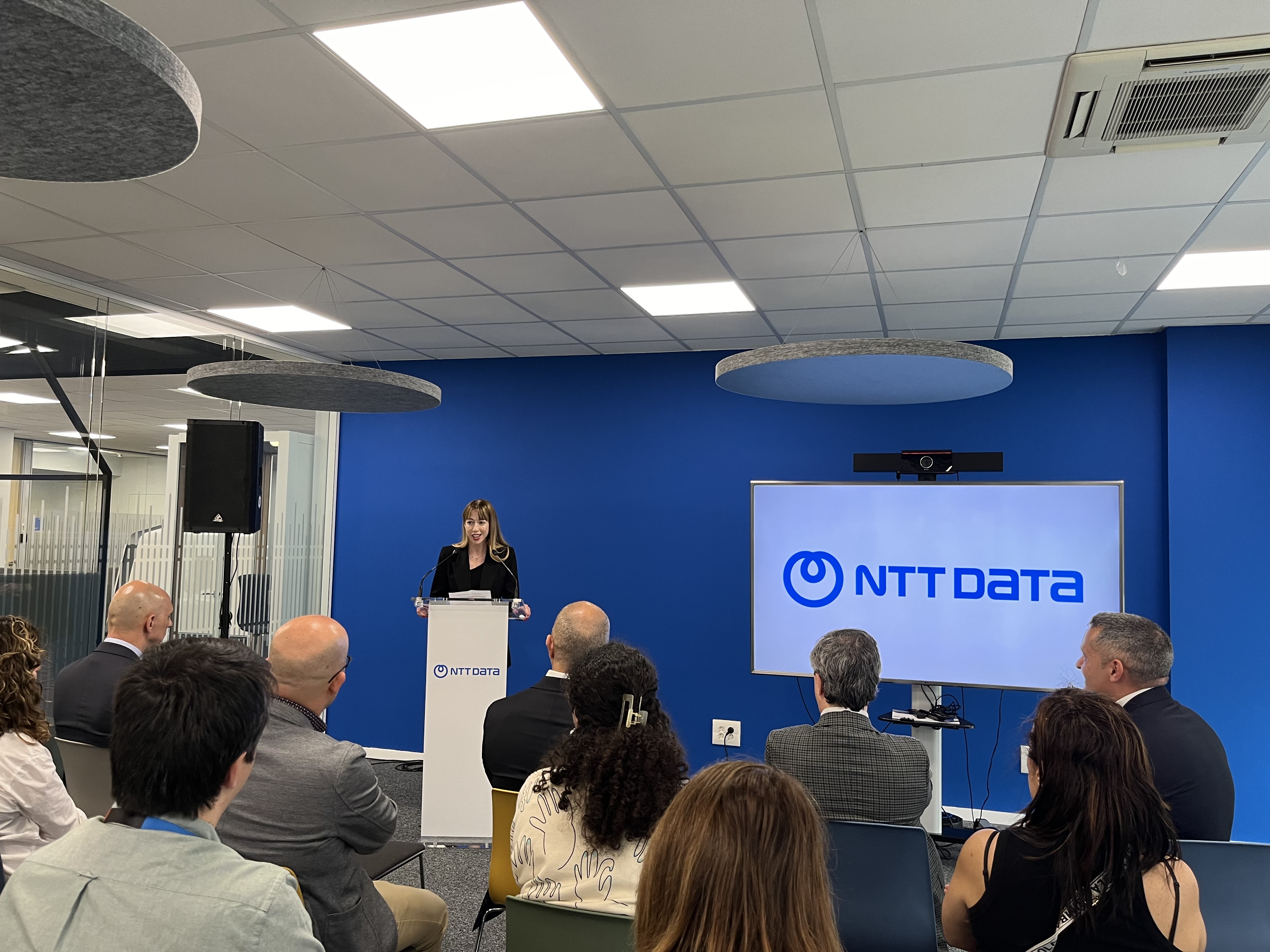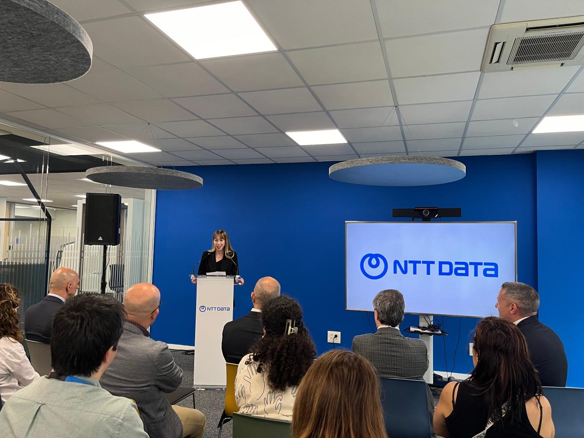 A directora xeral de Formación e Cualificación para o Emprego, Zeltia Lado, acompañada do director do Centro de Novas Tecnoloxías de Galicia (CNTG), visitou hoxe as instalacións na Coruña de NTT Data
