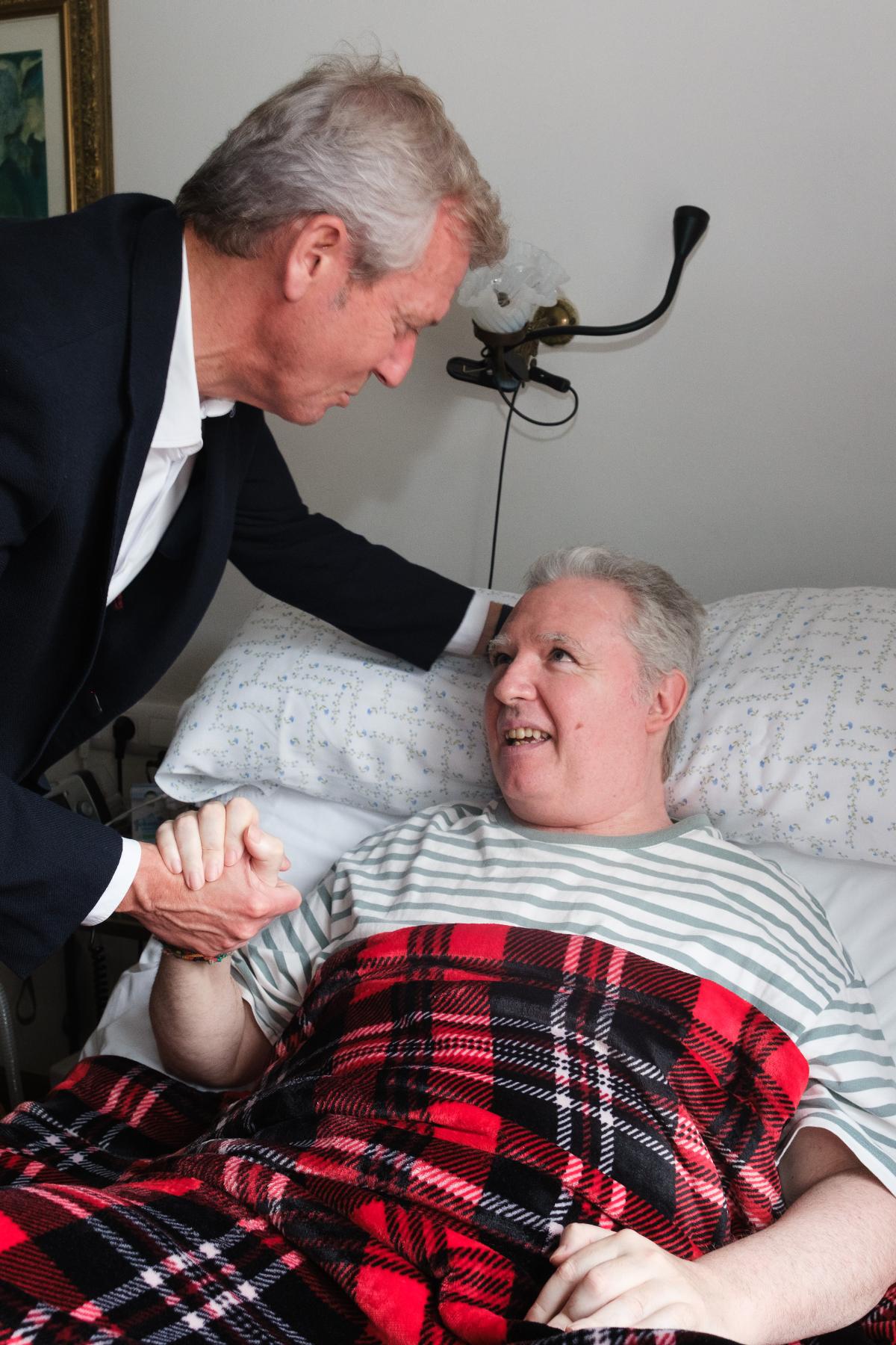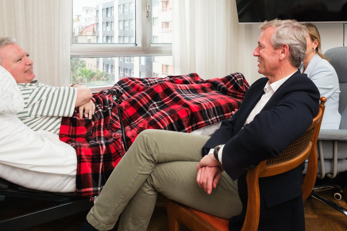 O titular do executivo galego, acompañado pola conselleira de Política Social e Igualdade, Fabiola García, visitou esta mañá o domicilio dun dos doentes diagnosticados con esta enfermidade, e beneficiario da convocatoria anterior, para coñecer de primeira man as súas necesidades e as da súa familia.