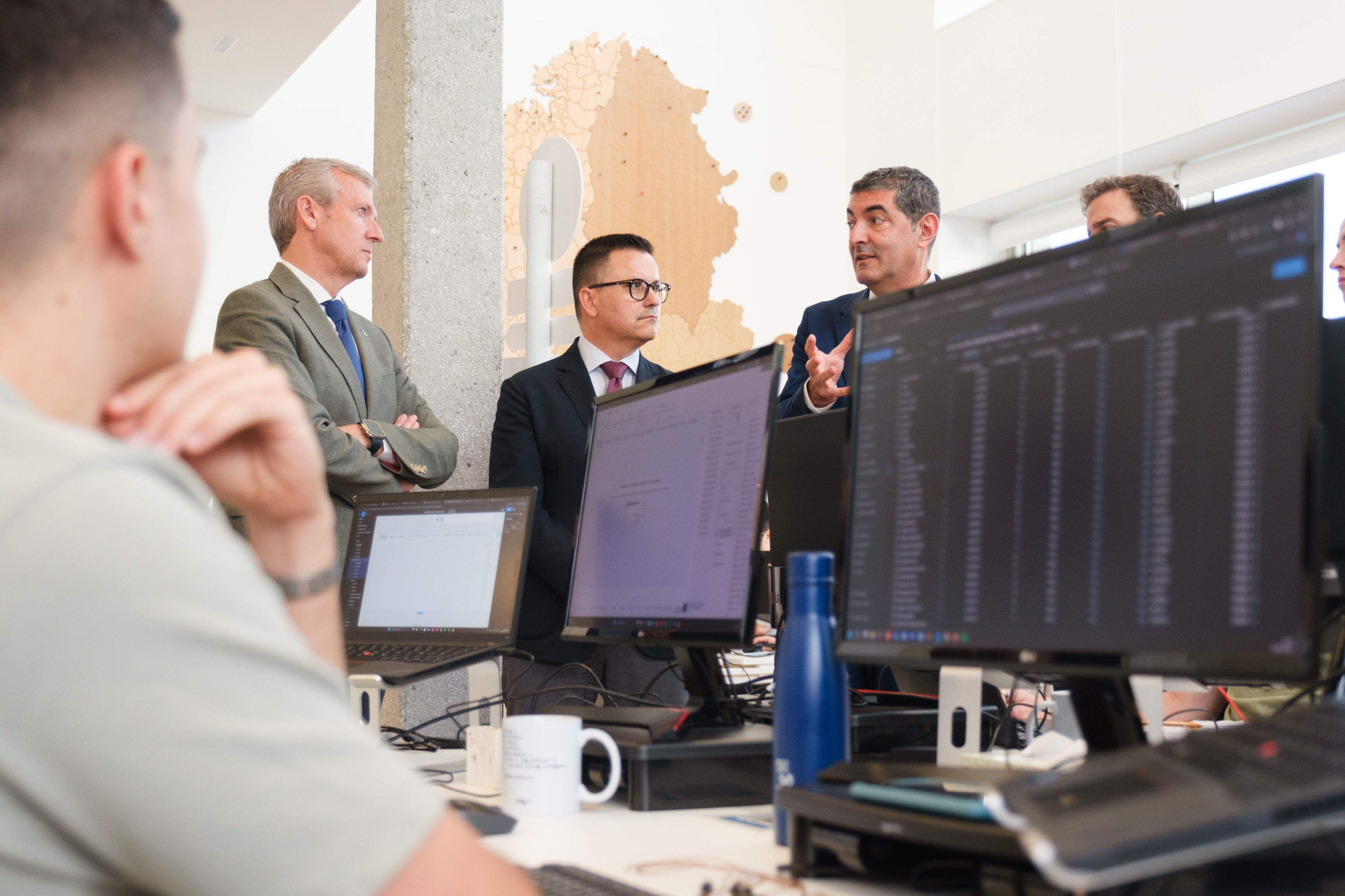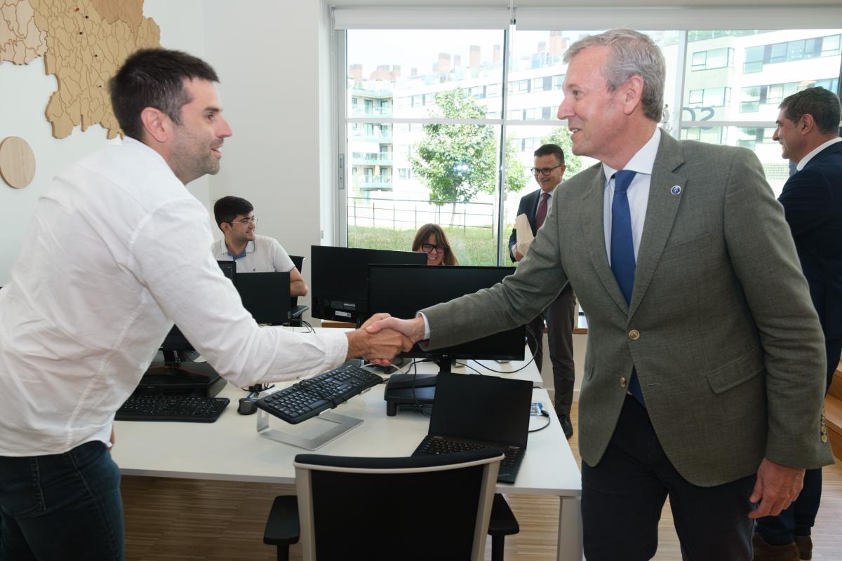 O presidente da Xunta visita a sede do grupo SDG en Santiago, que albergará o futuro ‘hub’ de Intelixencia Artificial da compañía