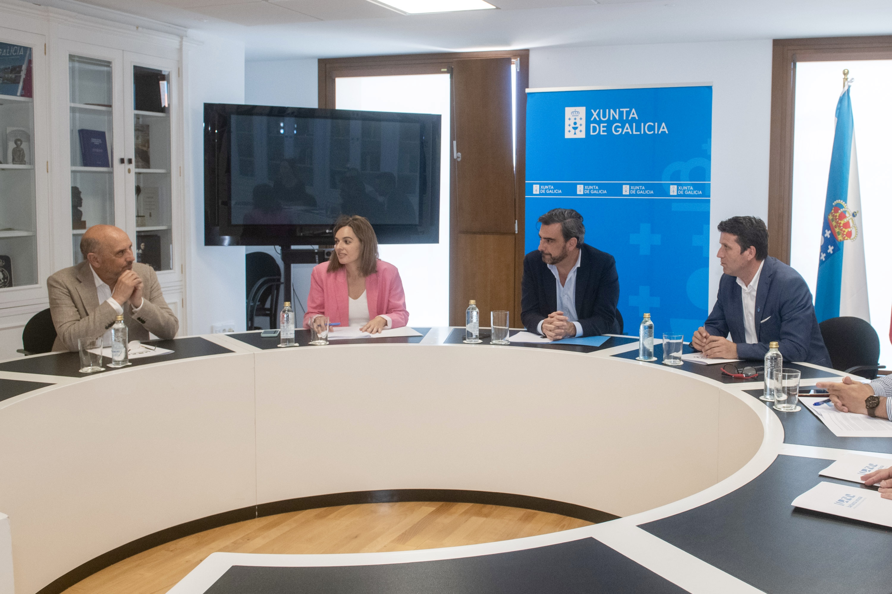 Anuncioullo o conselleiro de Presidencia, Xustiza e Deportes, Diego Calvo, aos alcaldes de Boiro, A Pobra do Caramiñal e Rianxo nunha xuntanza celebrada hoxe