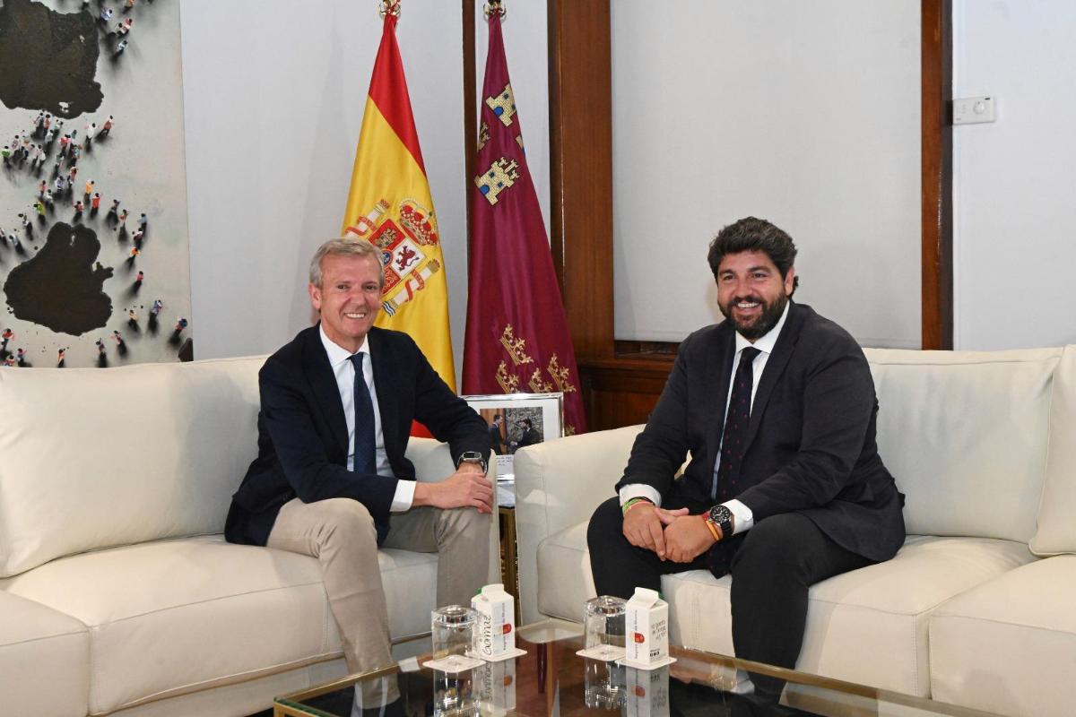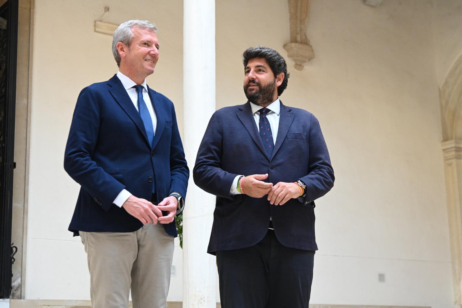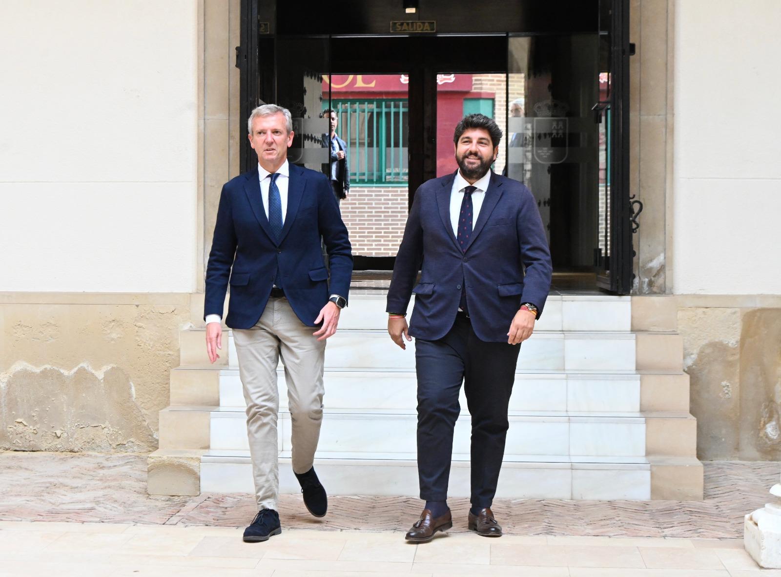 O presidente da Xunta, Alfonso Rueda, e o da Región de Murcia, Fernando López Miras, mantiveron esta tarde un encontro institucional na sede do Goberno da Rexión, onde o xefe do Executivo galego puido asinar no libro de honra.