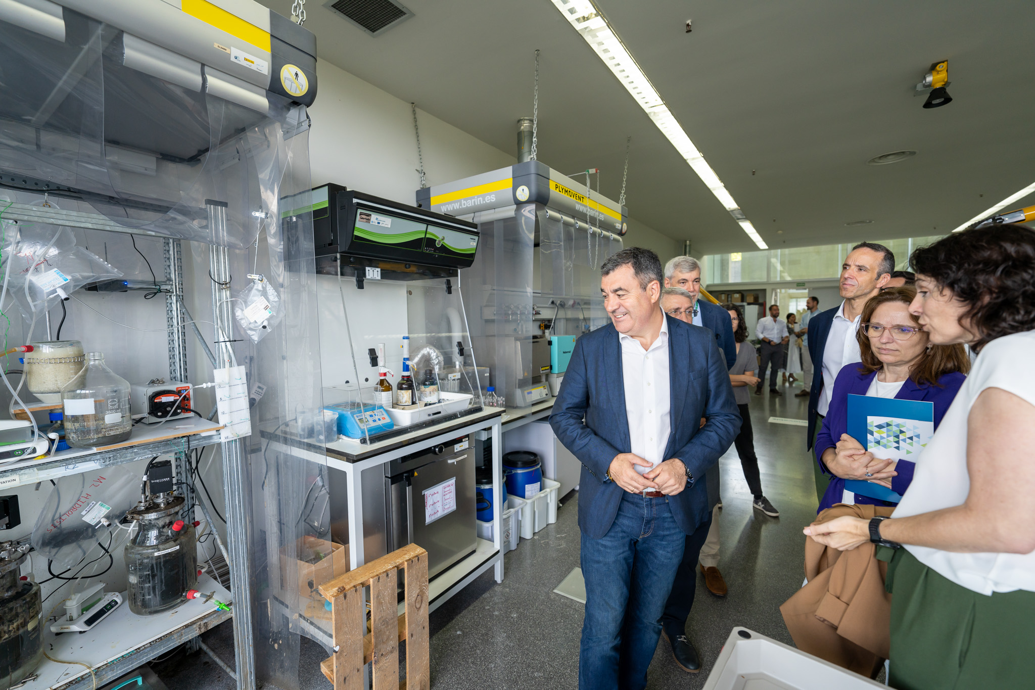 O conselleiro coñeceu o funcionamento do centro e dos laboratorios de bioenerxía, electroquímica, mobilidade e biomasa da man do vicepresidente de EnergyLab, José Cidrás; do delegado xeral de Naturgy en Galicia, Alberto Suárez, e do director xeral de EnergyLab, Fernando Val. Con equipos de alta tecnoloxía e a súa estratexia de innovación, este centro tecnolóxico busca lograr a transición enerxética e a descarbonización da sociedade mediante a xeración de gases renovables, de residuos biomásicos e o ensaio de novos biocombustibles para o transporte.