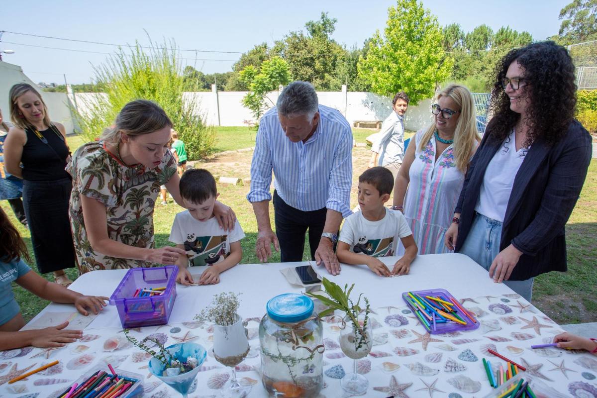 La conselleira de Política Social e Igualdade, Fabiola García, acompañada del alcalde de Sanxenxo, Telmo Martín, visitó esta mañana a los chicos y chicas que participan en el campamento Sanxenxo concilia en el CEIP A Florida. Es el centro donde se desarrolla este programa de conciliación que recibe financiación de la Xunta de Galicia a través del Plan Corresponsables.