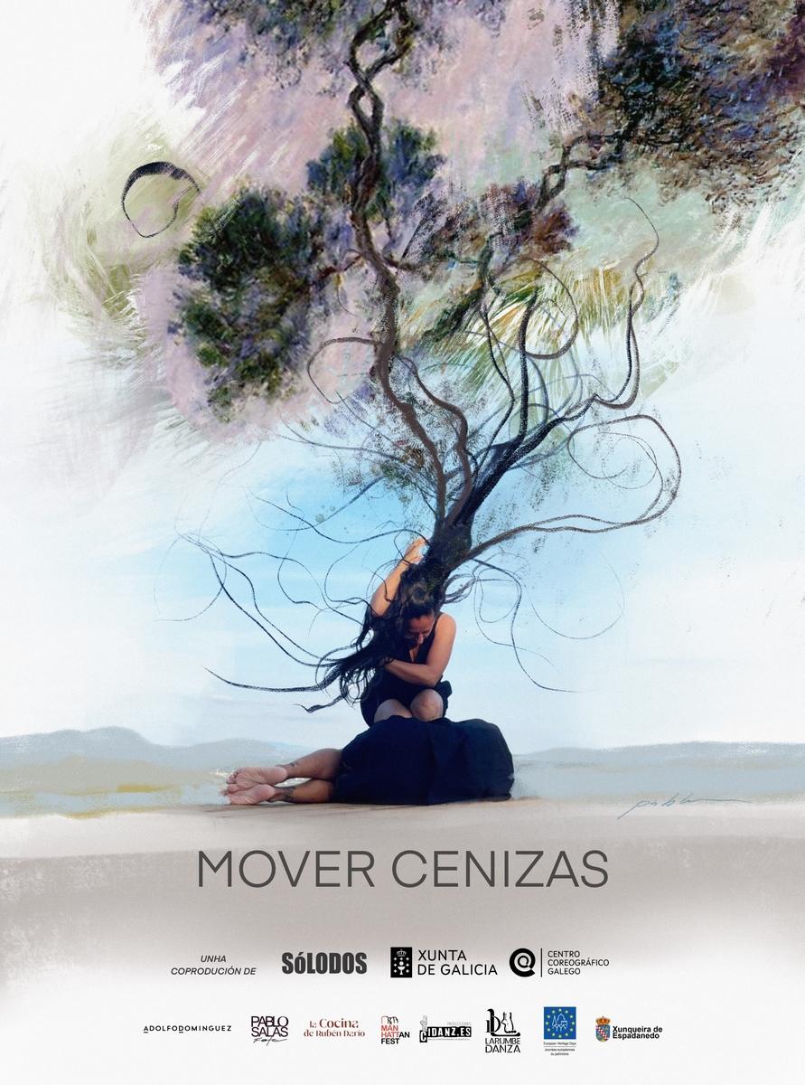 Mover cenizas está inspirada na vaga de lumes que asolaron a provincia de Ourense no ano 2006 e que deixaron unha profunda pegada na coreógrafa Maruxa Salas. A cinza aparece como residuo do arrasado, do deserto e da poética do que queda, do que perdura e como se transforma, construíndo a partir dos bosques convertidos en po unha metáfora do rexurdimento, un convite a habitar o presente para continuar polo camiño da vida.