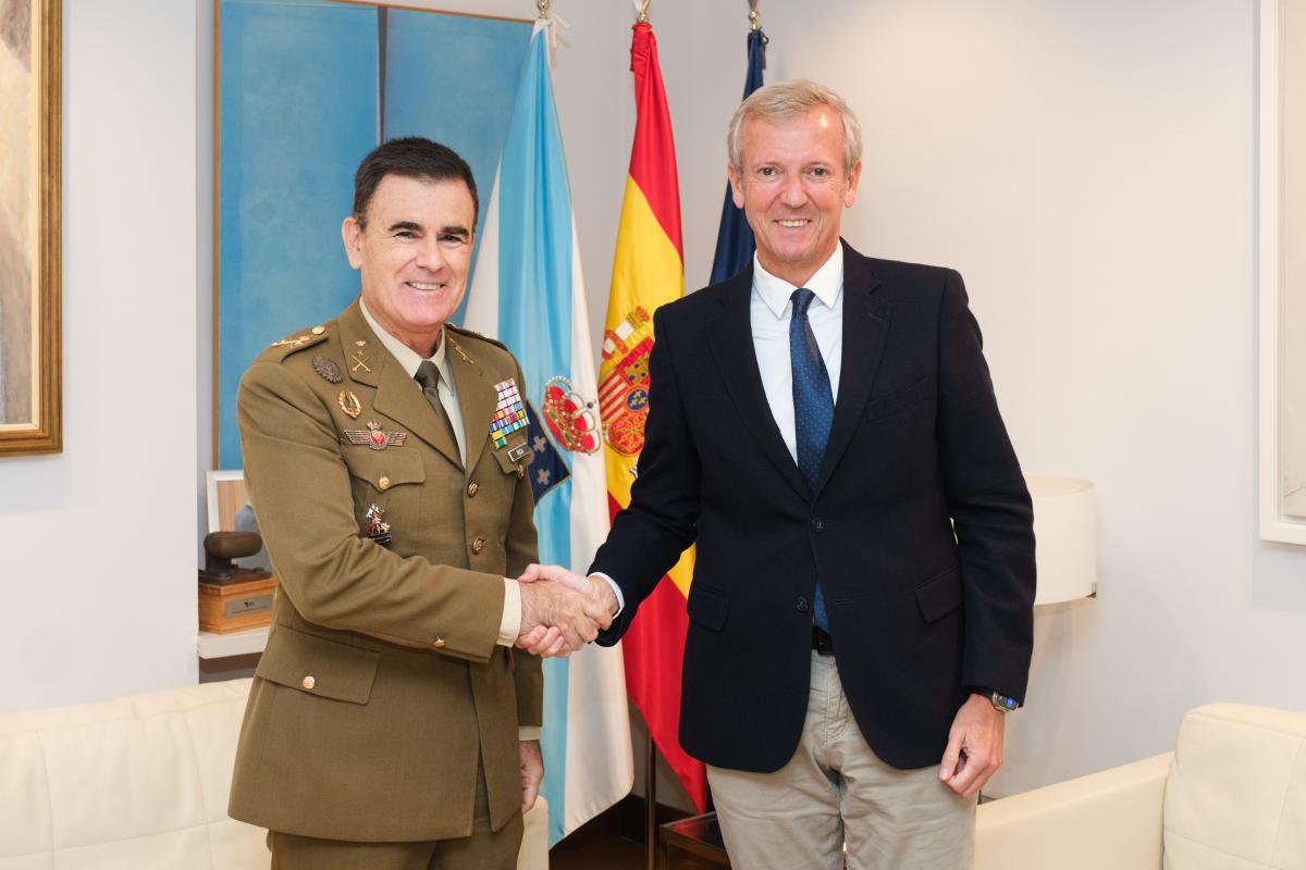 El presidente de la Xunta, Alfonso Rueda, recibió hoy al general jefe del Mando de Apoyo a la Maniobra, Raimundo Rodríguez Roca.