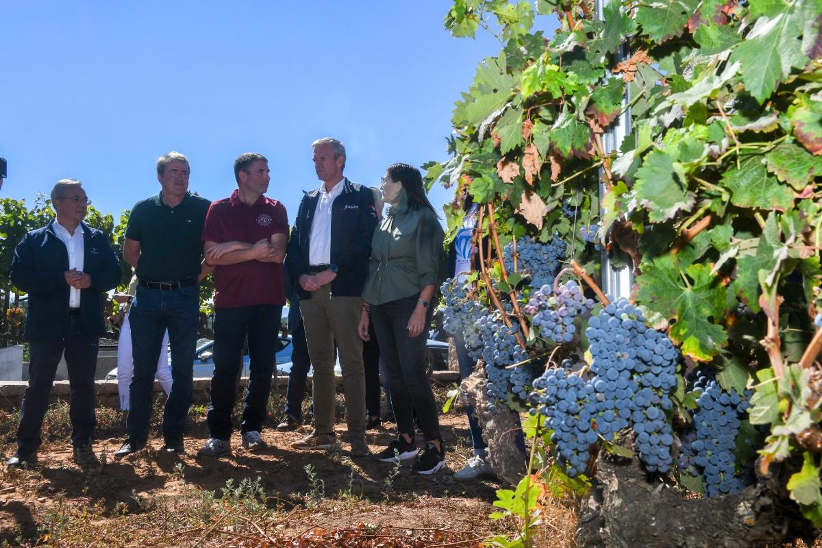 O presidente da Xunta, Alfonso Rueda, destacou hoxe as boas previsións de recollida da uva deste ano, o que fai prever unha vendima de récord en Denominacións de Orixe (D.O.) como a de Monterrei, onde se estima recoller máis de 7 millóns de kilos de uva, o que suporía acadar esta cifra por primeira vez na historia.