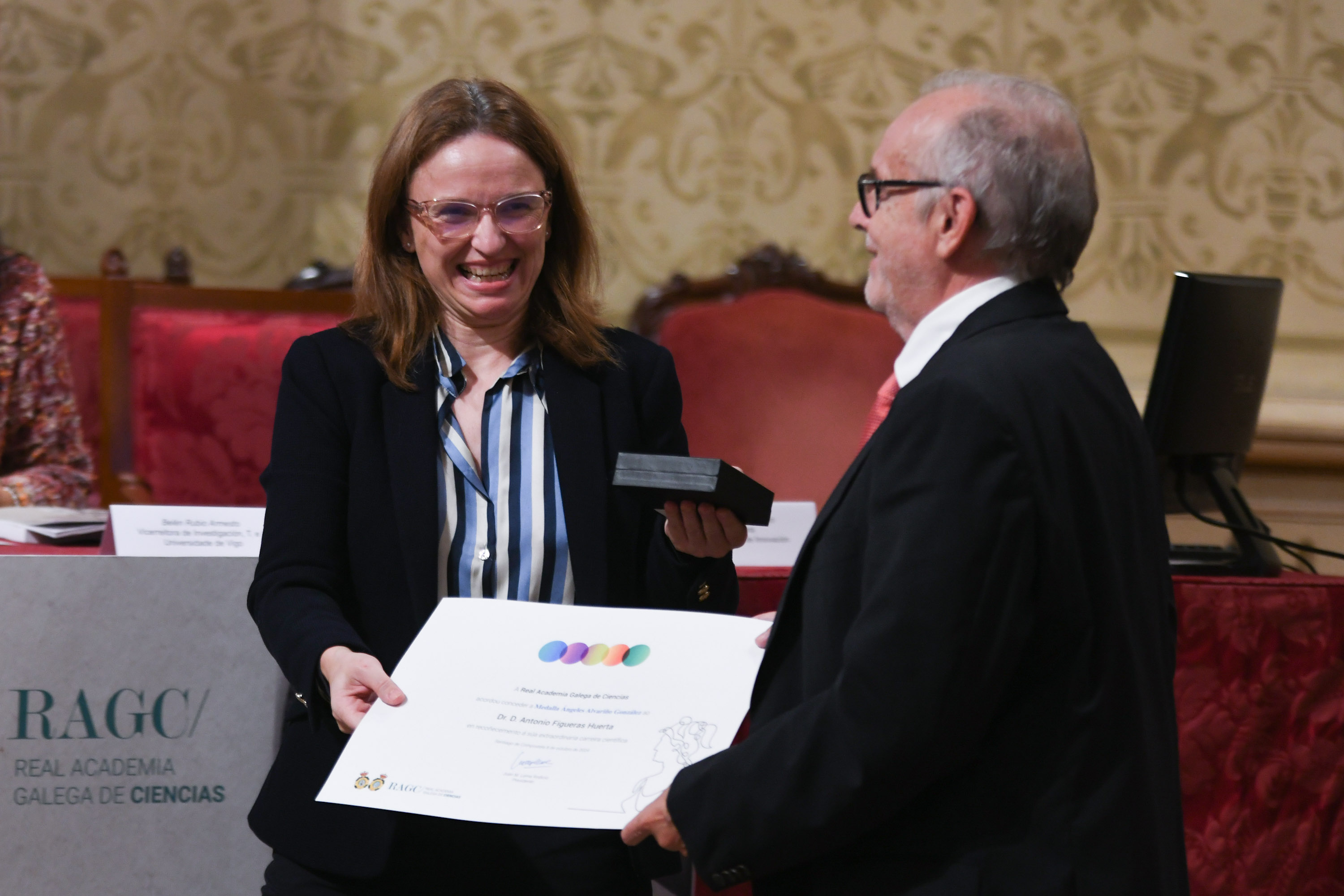 Este 2024 a Academia galega recoñece a traxectoria de cinco científicos galegos en activo das universidades de Santiago de Compostela, Vigo e do CSIC. O investigador do Instituto de Investigacións Mariñas do CSIC Antonio Figueras recibiu a Medalla Ánxeles Alvariño González da sección de Bioloxía e Ciencias da Saúde; o catedrático de Economía Aplicada da USC Santiago Lago fíxose coa Medalla Domingo García-Sabell da sección de Ciencias Económicas e Sociais; o catedrático de Enxeñaría Cartográfica, Xeodésica e Fotogrametría na Escola de Enxeñaría de Minas e Enerxía da Uvigo Pedro Arias foi recoñecido no campo das Ciencias Técnicas coa Medalla Isidro Parga Pondal; o catedrático de Ciencias da Computación e Intelixencia Artificial da USC e investigador do CiTIUS Alberto Bugarín recibiu a Medalla Enrique Vidal Abascal da sección de Matemáticas, Física e Ciencias da Computación, e, finalmente, o investigador do CiQUS Diego Peña obtivo a Medalla Antonio Casares Rodríguez da sección de Química e Xeoloxía.