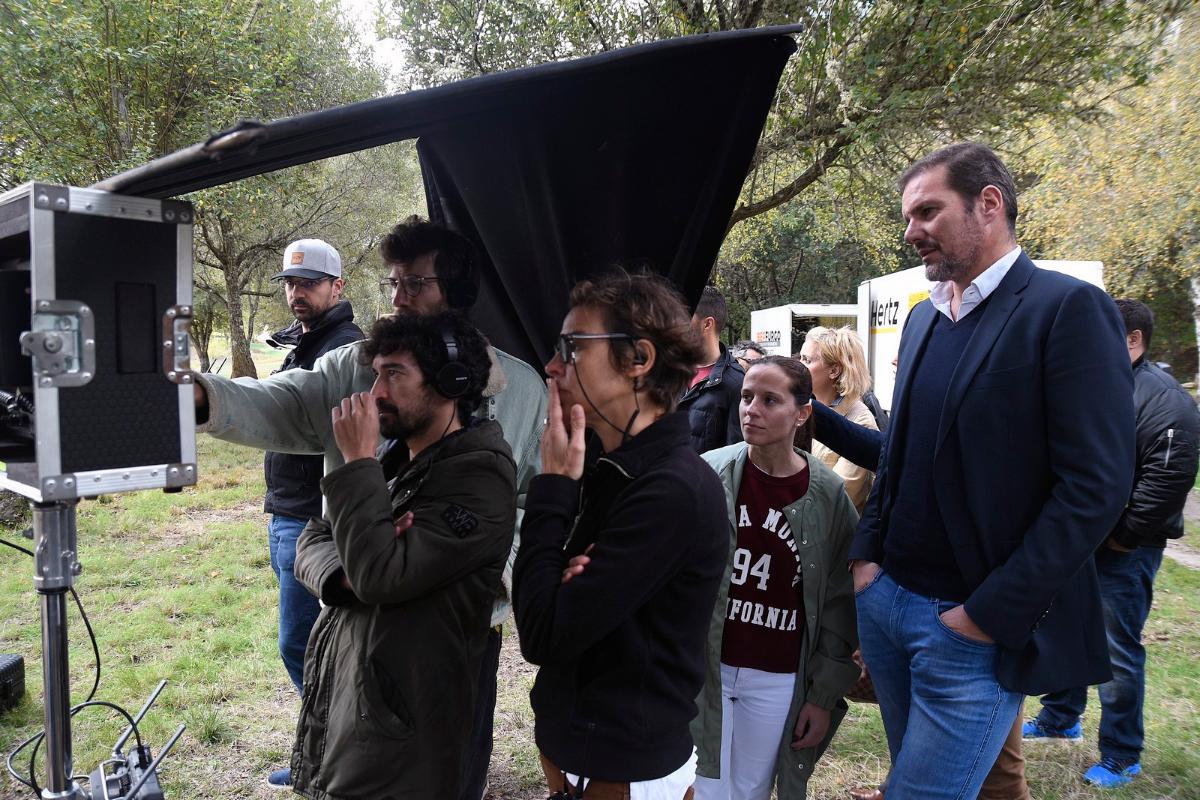López Campos visita o equipo de ‘Onte á noite conquistei Tebas’ na súa rodaxe nas termas romanas de Bande