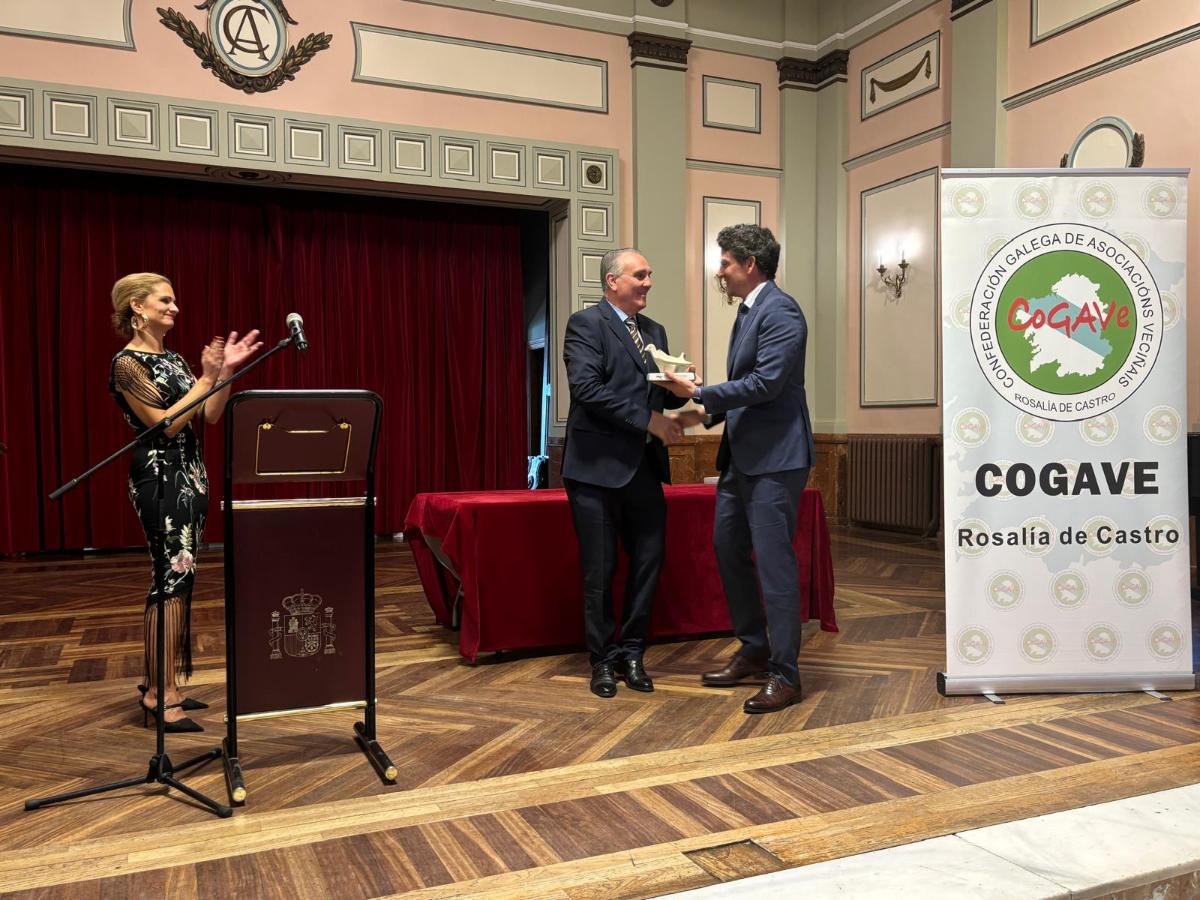 O delegado territorial en Lugo asistiu á XI edición dos premios ‘Crer no movemento veciñal’ da Confederación Galega de Asociacións Veciñais ‘Rosalía de Castro’ (Cogave), na que recolleu o galardón concedido á directora xeral de Administración Local, Natalia Prieto, pola colaboración do Goberno galego co movemento veciñal