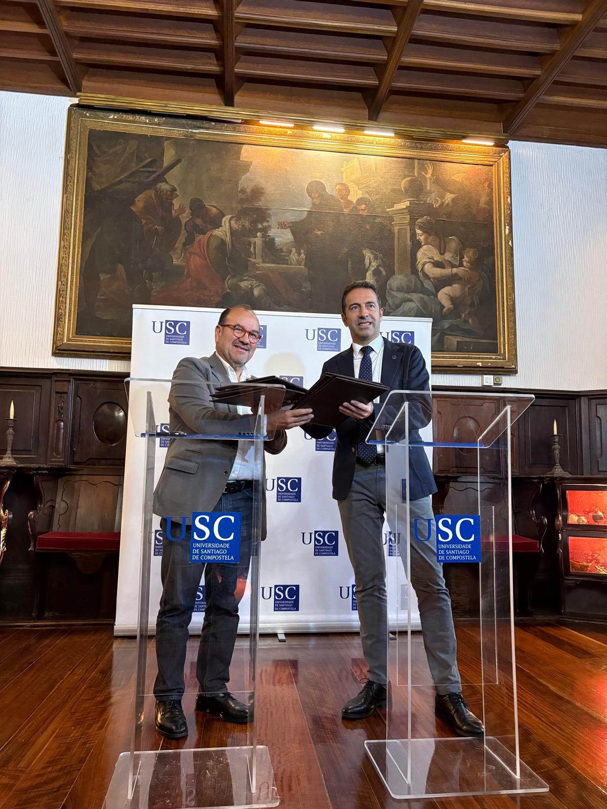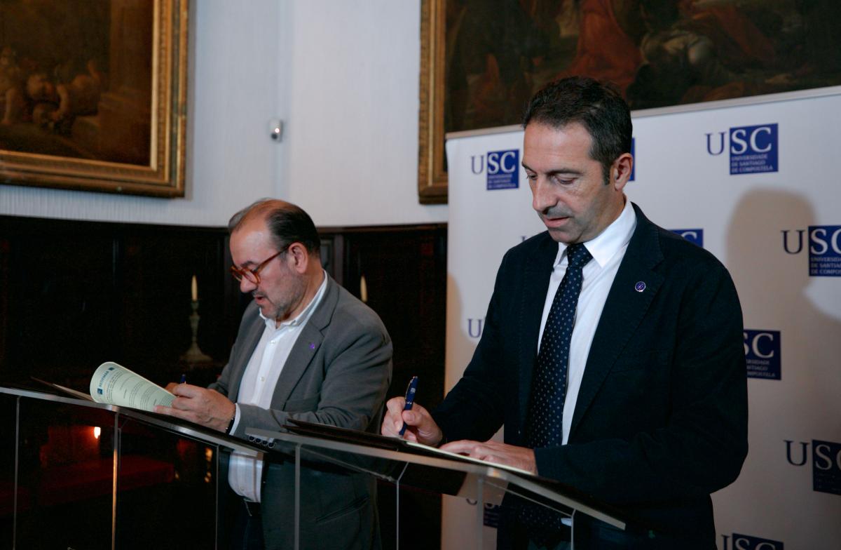 O conselleiro do Mar e o Reitor da Universidade compostelá asinan senllos convenios de colaboración que rexerán o labor investigador ata 2026