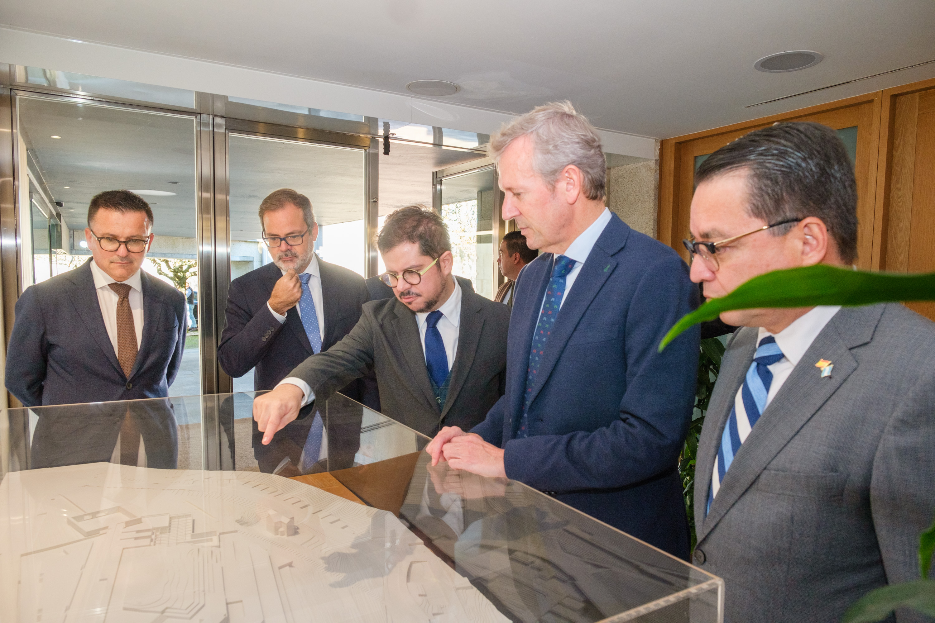 O presidente da Xunta, Alfonso Rueda, acompañado do conselleiro de Emprego, Comercio e Emigración, José González, reuniuse este mediodía cos embaixadores de Arxentina, Chile e Honduras en España co obxectivo de intercambiar experiencias sobre a atracción do talento.