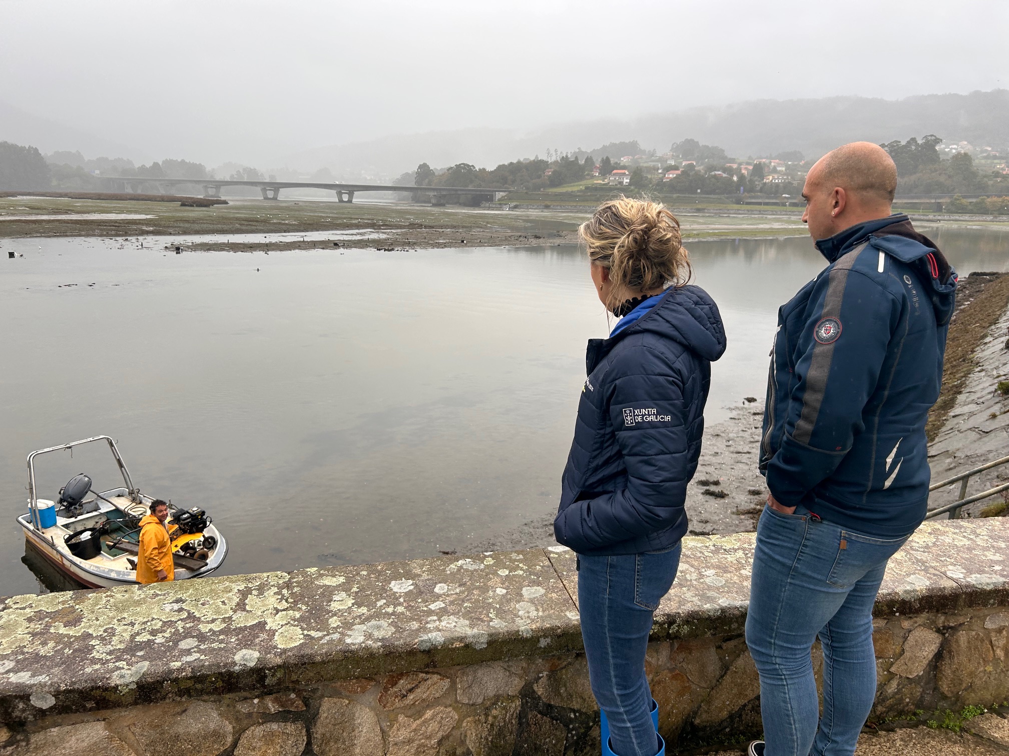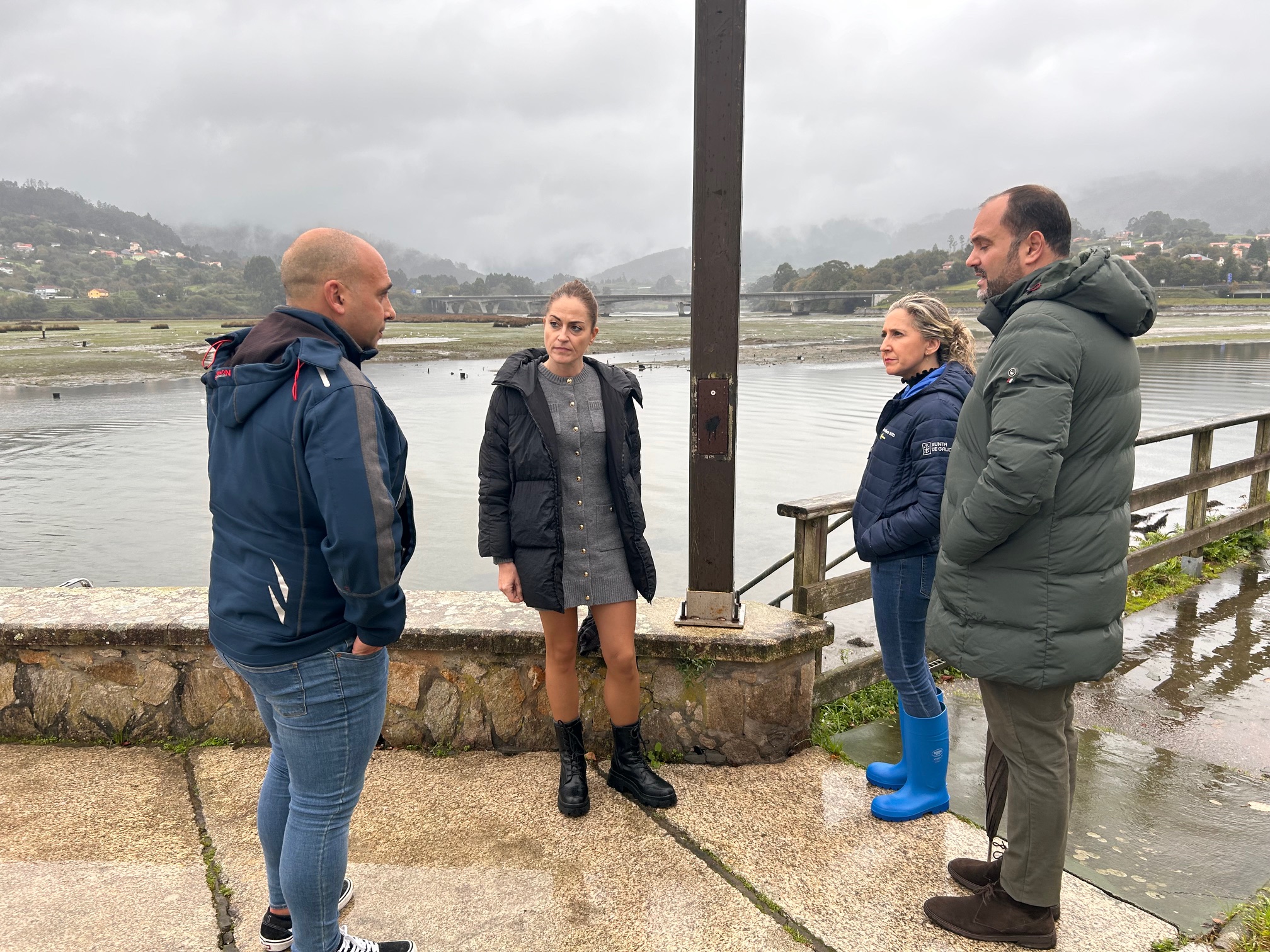 La delegada territorial de Ferrol, Martina Aneiros, se acercó esta mañana a las cercanías del paseo marítimo de Pontedeume donde la cofradía desarrolla las tareas de semilla en la zona de Os Moteis