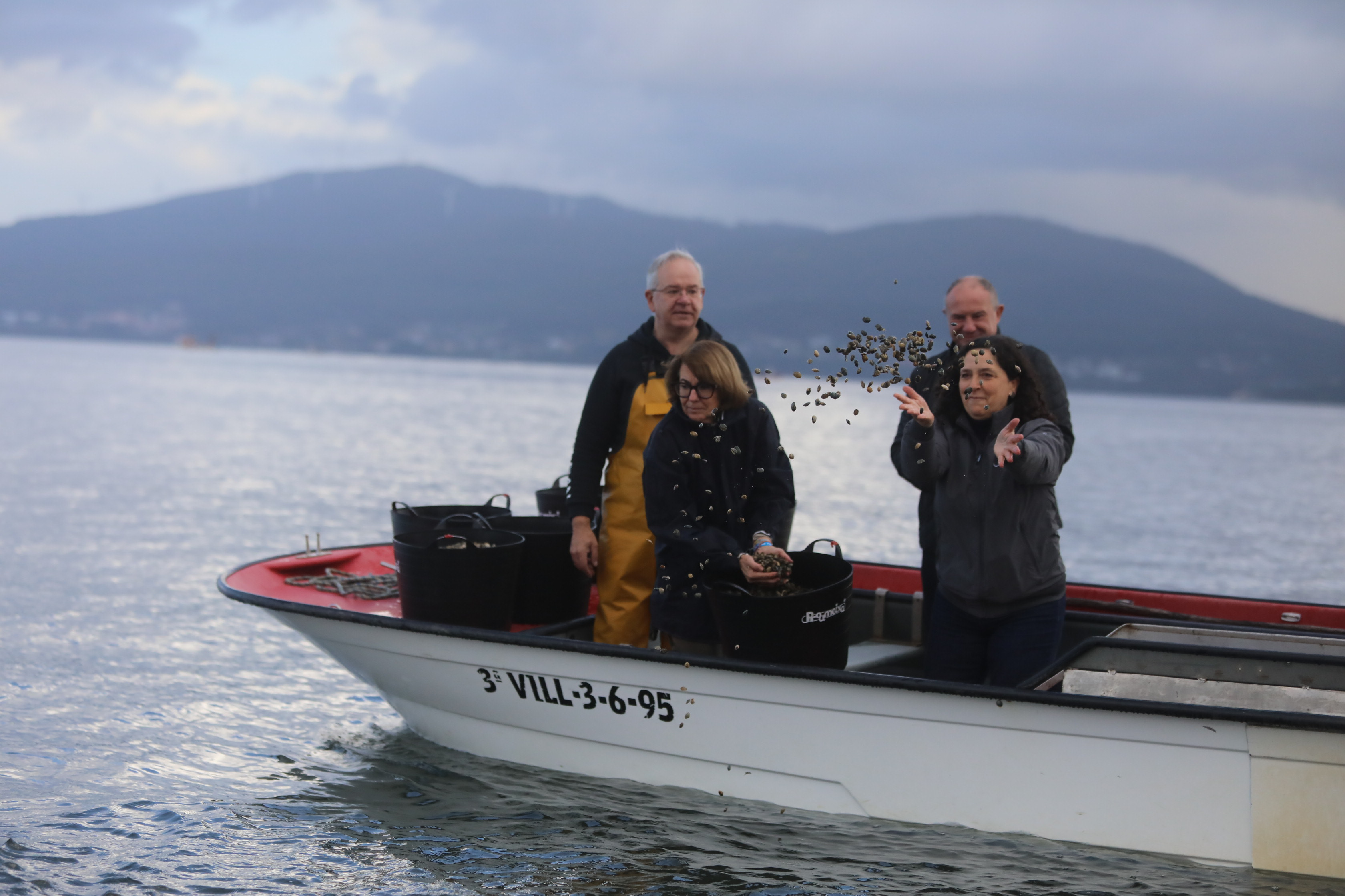 La delegada de la Xunta, Belén do Campo, junto a la directora territorial de la Consellería del Mar, María Cancelo, participó en la siembra de algo más de 740.246 unidades de almeja japonesa para semilla en la ría de Arousa. Este lote fue entregado a los mariscadores de la Sociedad Cooperativa Gallega Ría de Arousa, de acuerdo con la subvención aprobada de más de 11.400 euros de ayudas de regeneración por las mortalidades del otoño de 2023, financiada con fondos propios de la Consellería, a proyectos de regeneración que permitan mejorar la productividad de los bancos marisqueros con problemas de pérdida de producción y que contribuyan a una mejora de la gestión y conservaciones sostenibles de los recursos marinos. De esta misma línea recibieron estas ayudas 18 ayuntamientos de Galicia por un importe de más 237.000 euros, y en concreto 9 fueron de la provincia de A Coruña superando el 50% de la inversión total de las ayudas.