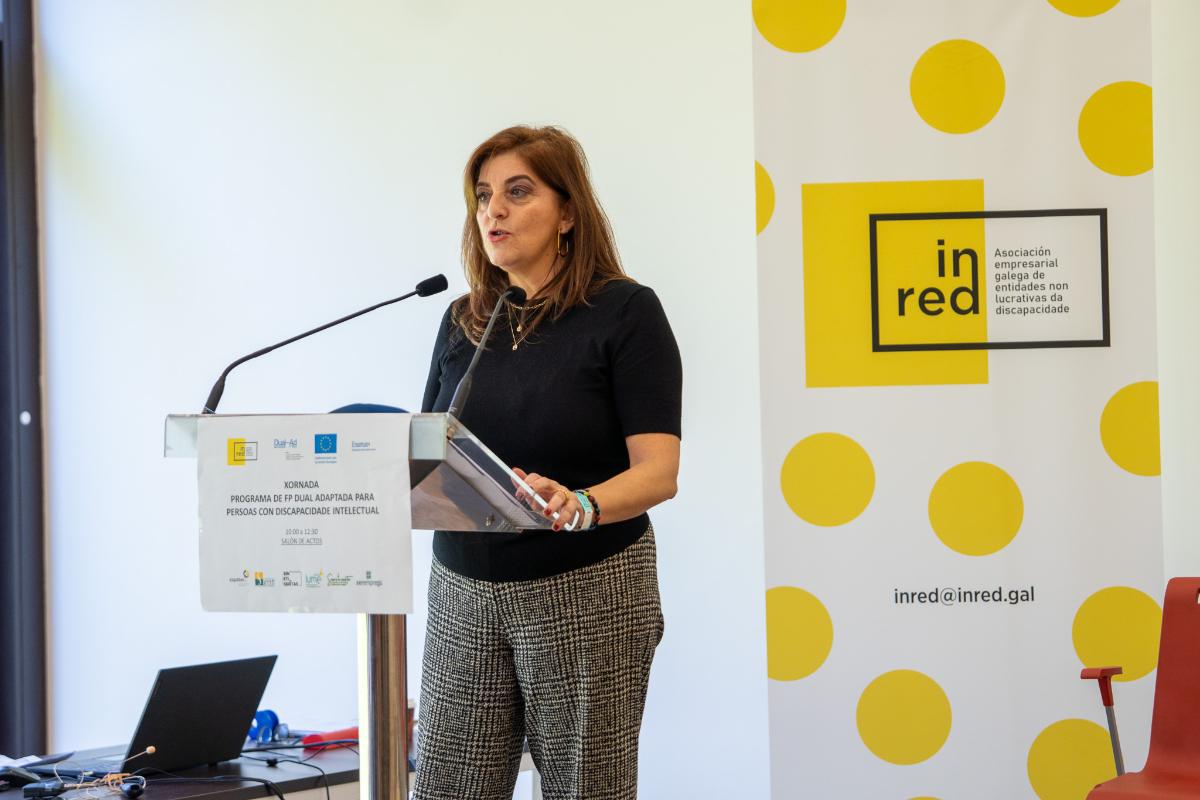 La directora general de Trabajo Autónomo y Economía Social, Marta Mariño, participó hoy en Nigrán en el acto de presentación de los nueve itinerarios de formación profesional dual adaptada para personas con discapacidad intelectual promovidos en un total de seis centros especiales de empleo en el marco de la convocatoria específica de la Xunta que prolongará su ejecución hasta 2027. Allí, Mariño destacó las acciones en los sectores del comercio, de la hostelería, de la jardinería, de la gestión forestal y de la limpieza de las que se podrán beneficiar un total de 90 personas.