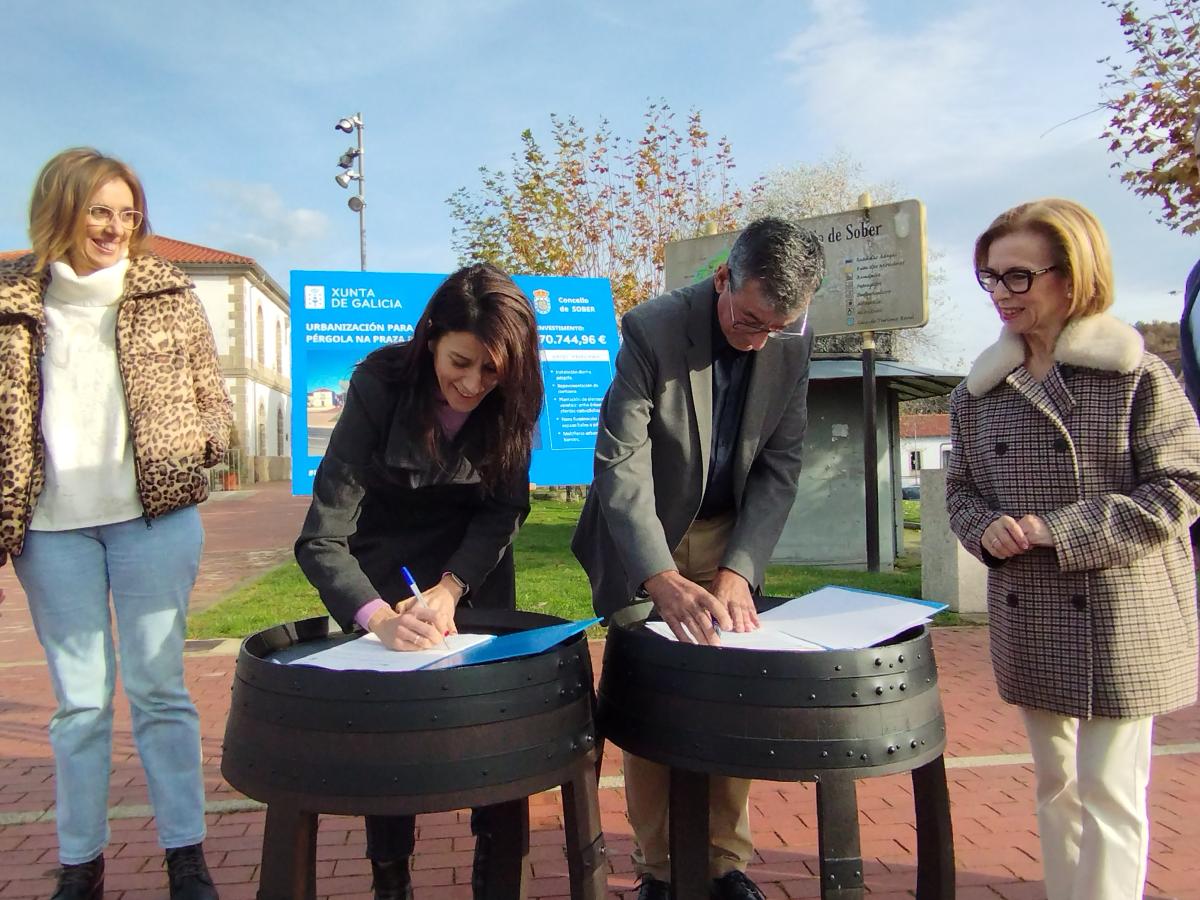 A conselleira de Vivenda de Planificación de Infraestruturas, María M. Allegue, asinou co alcalde de Sober, Luis Fernández, o convenio de colaboración, ao abeiro do Plan Hurbe, para materializar estas melloras