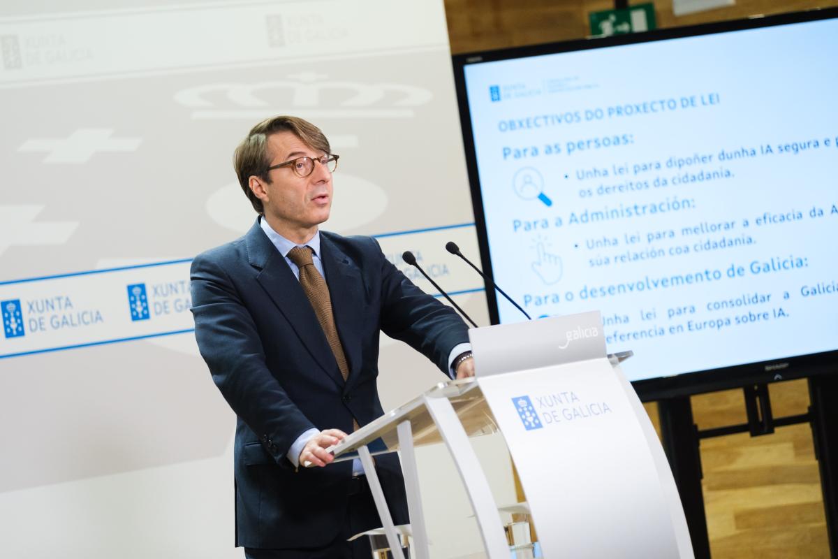 El objetivo, tal y como resaltó el conselleiro de Facenda e Administración pública, Miguel Corgos, es garantizar un desarrollo y una utilización de la inteligencia artificial "ética, segura, fiable y centrada en las personas". "Dotamos a la comunidad de un marco jurídico estable que de certezas y blinde derechos", añadió.