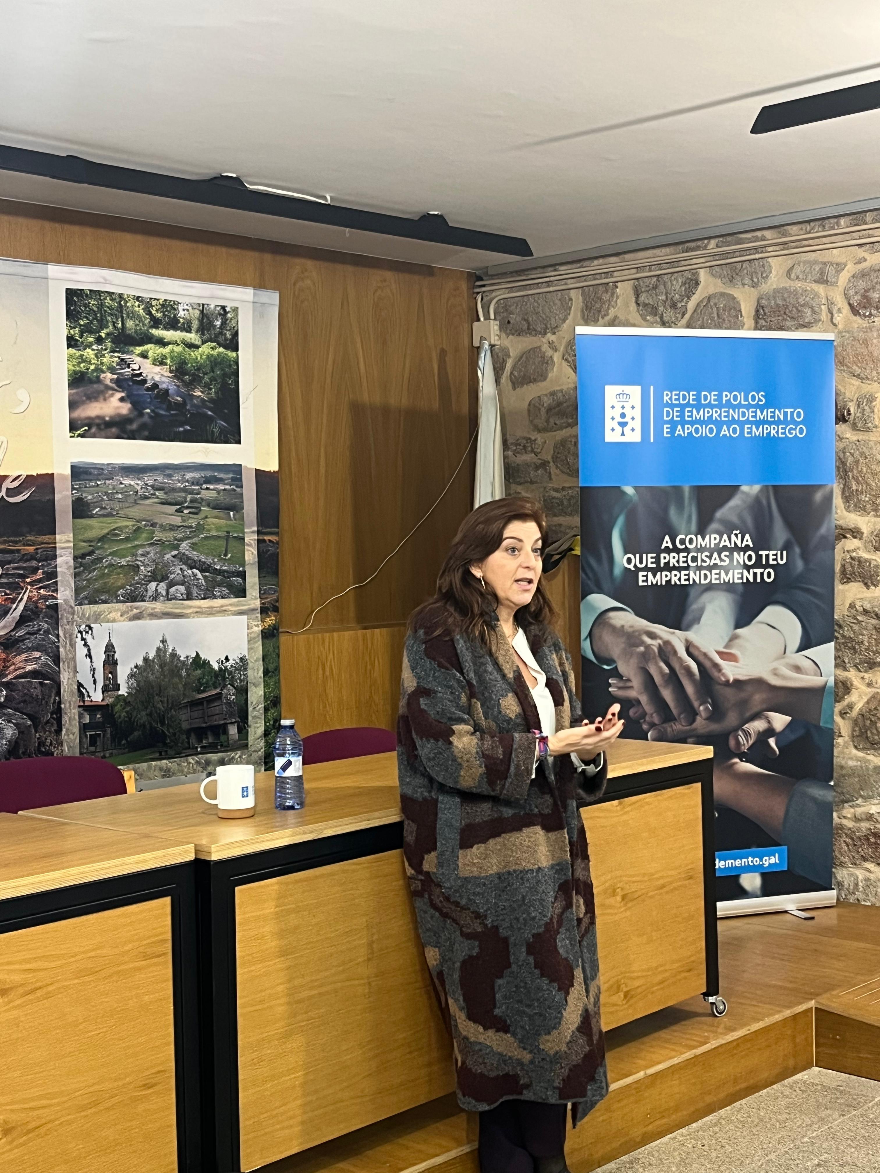 A directora xeral de Traballo Autónomo e Economía Social, Marta Mariño, participou hoxe na clausura da xornada Economía dos coidados: emprendemento para transformar o modelo actual, organizada no marco das actividades do Polo de emprendemento e apoio ao emprego de Silleda. Alí puxo de relevo o valor da Rede de polos para ofrecer recursos e asesoramento en materia de emprendemento de negocios. De feito, nas 15 oficinas coas que conta no territorio galego, lévanse asesorado máis de 2.900 proxectos.