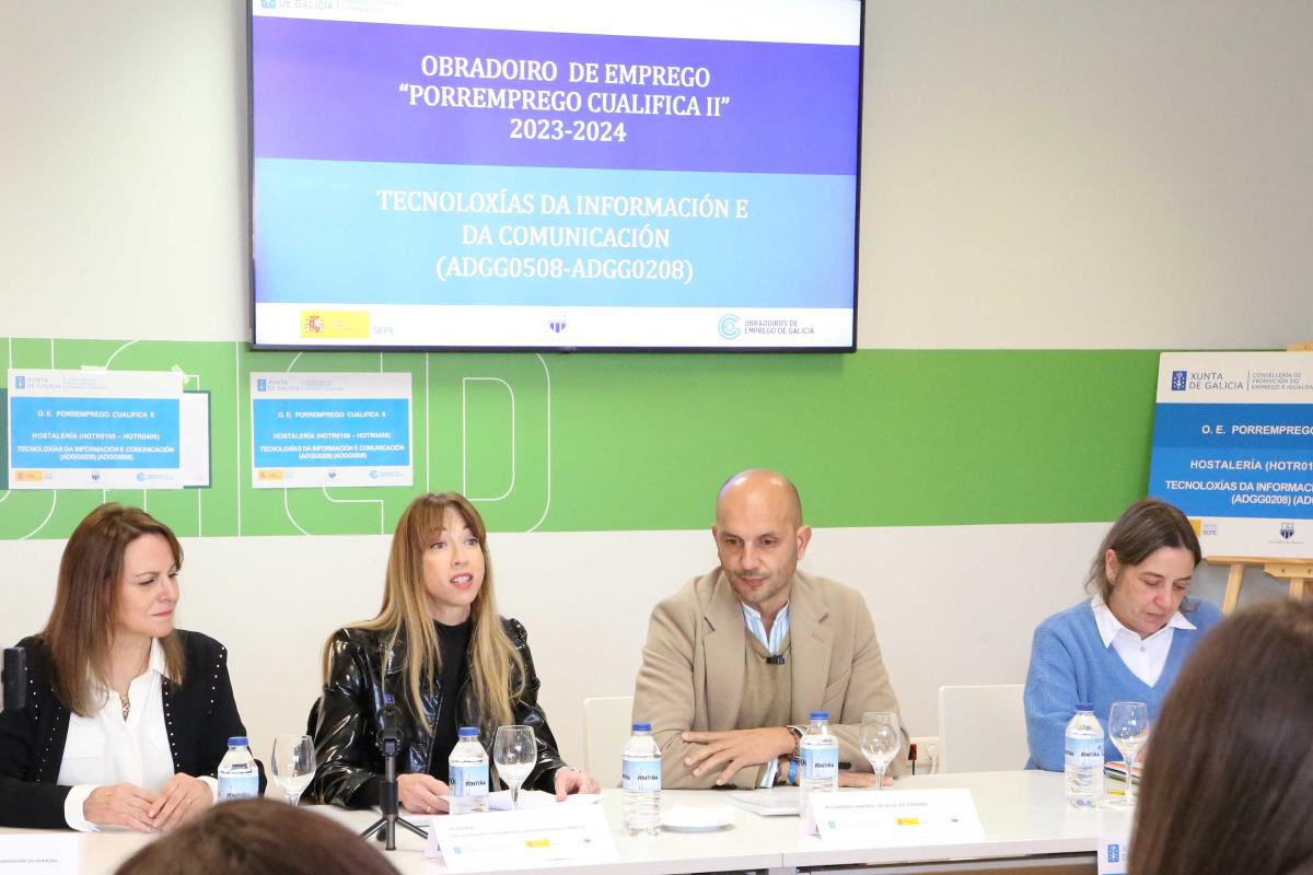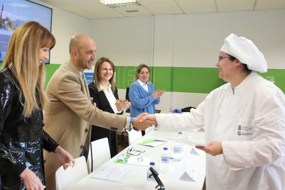 La directora general de Formación y Cualificación para el Empleo, Zeltia Lado, participó hoy en los dos actos de cierre de talleres, en el caso de O Porriño, relacionado con la hostelería y con las nuevas tecnologías, y en el de Mos, con el marketing y con la carpintería 3D
