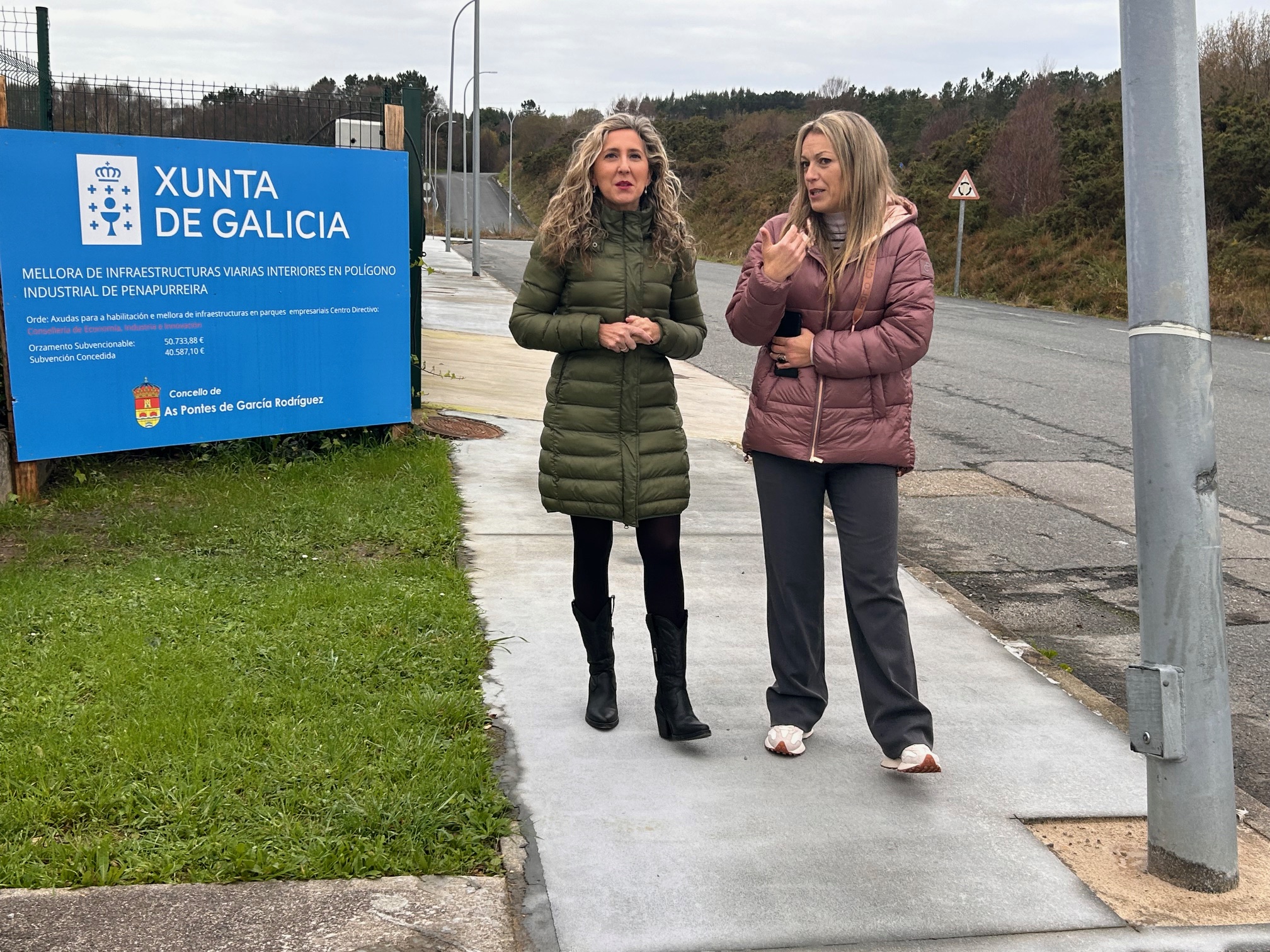 A delegada territorial da Xunta en Ferrol, Martina Aneiros visitou esta mañá o polígono industrial de Penapurreira, onde o Concello acometeu obras de mellora das infraestruturas viarias interiores con cargo a unha axuda da Consellería de Economía e Industria para a habilitación e mellora de infraestruturas nos parques empresariais da Comunidade Autónoma de Galicia.