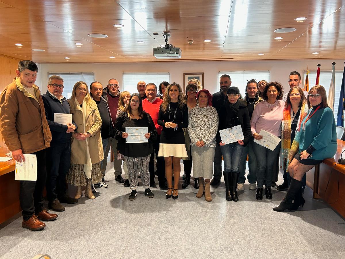 La delegada territorial de la Xunta en Ferrol, Martina Aneiros, participó esta mañana en los actos de cierre de ambos talleres, en el caso del de Ferrol enfocado a la recuperación y puesta en valor del parque municipal de Ò Montón´ y en el de Mugardos, de atención sociosanitaria y carpintería y mueble