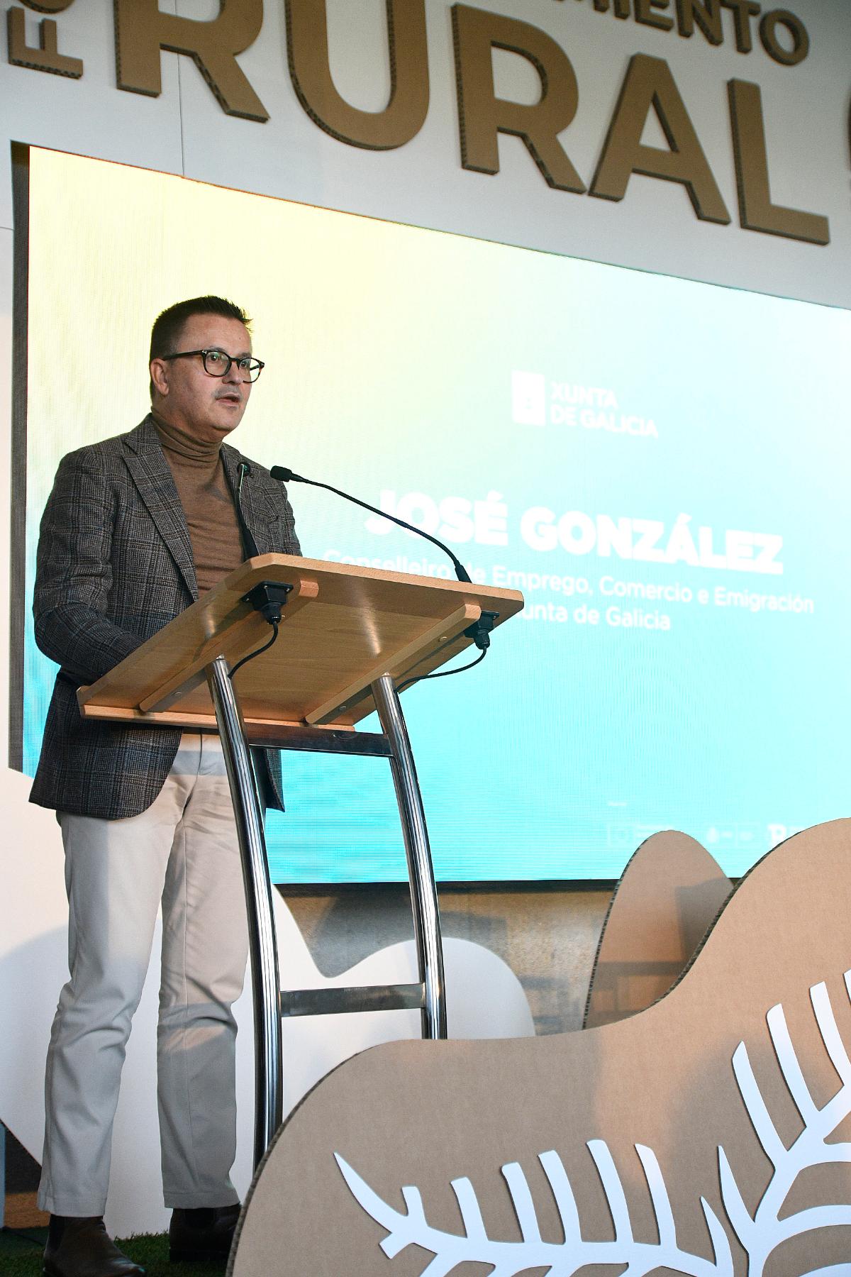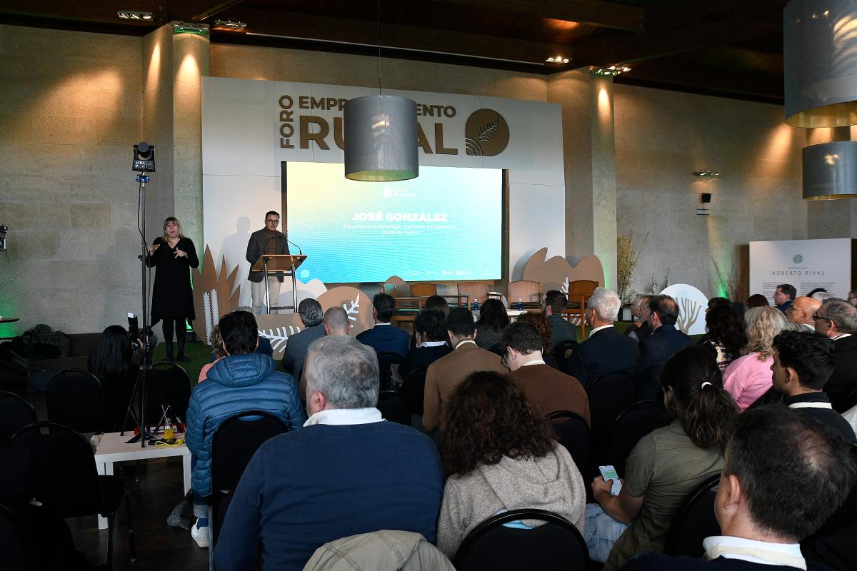 El conselleiro de Emprego, Comercio e Emigración, José González, acompañado por el secretario general de Empleo y Relaciones Laborales, Pablo Fernández, puso en valor el potencial de Galicia como un referente en el emprendimiento ligado al territorio, como ya avala el galardón comunitario la Región Emprendedora Europea 2024. Lo hizo en el marco del I Foro de Emprendimiento Rural, organizado por la Fundación Roberto Rivas y que reunió entre ayer y hoy en Allariz la personas emprendedoras, así como instituciones y organizaciones nacionales e internacionales para debatir sobre las oportunidades y los desafíos en el entorno rural.