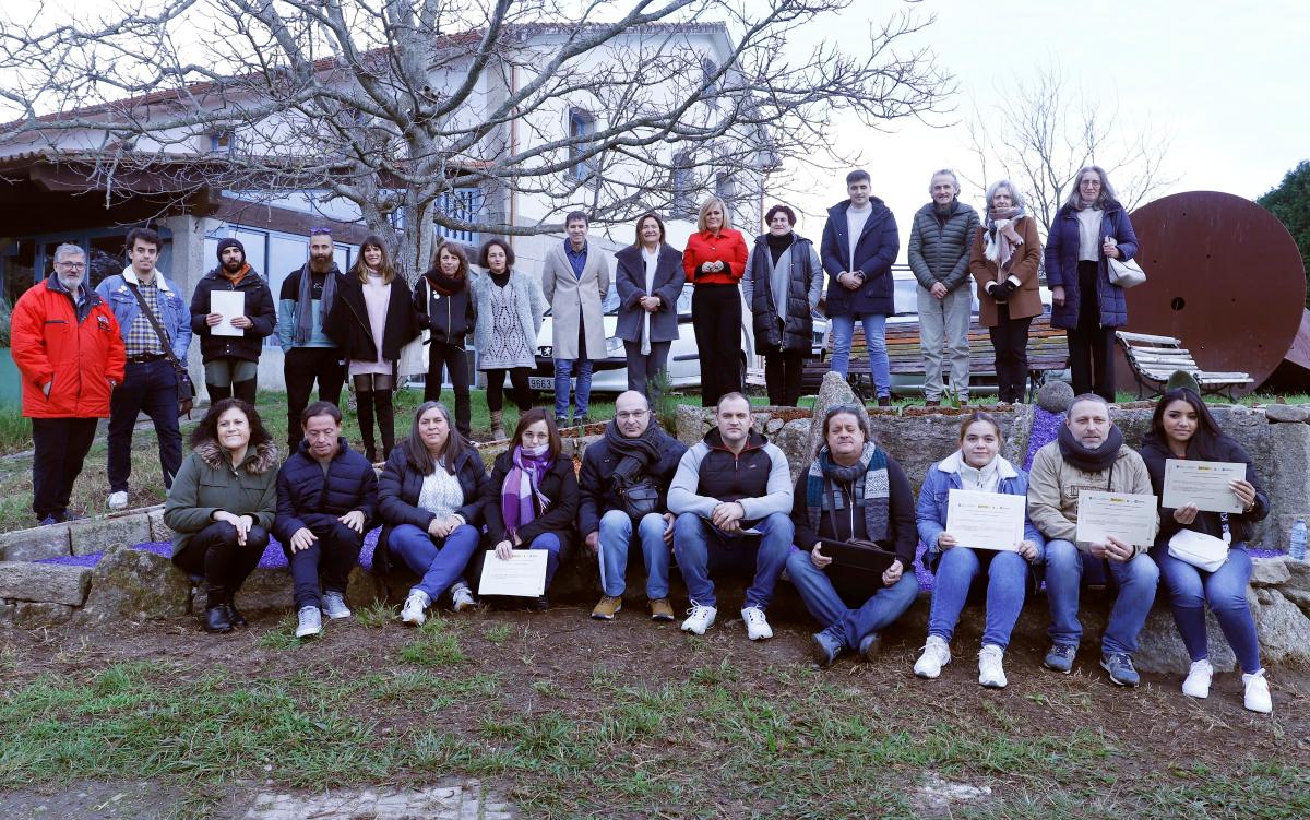 La representante autonómica, que estuvo acompañada por la alcaldesa, Digna Rivas, participó en la entrega de los diplomas que acreditan a los participantes en el taller. Durante los últimos doce meses, el alumnado llevó a cabo por una parte la formación en materia de jardinería, forestal y agricultura ecológica a través de actuaciones en la Finca A Acotada, en la Finca no Camiño da Vía Vella, en la Rotonda de Vilavella, en la Rotonda Vilar de Infesta, en la Finca y huerta del Pousadouro y en el Colegio Público de Reboreda.