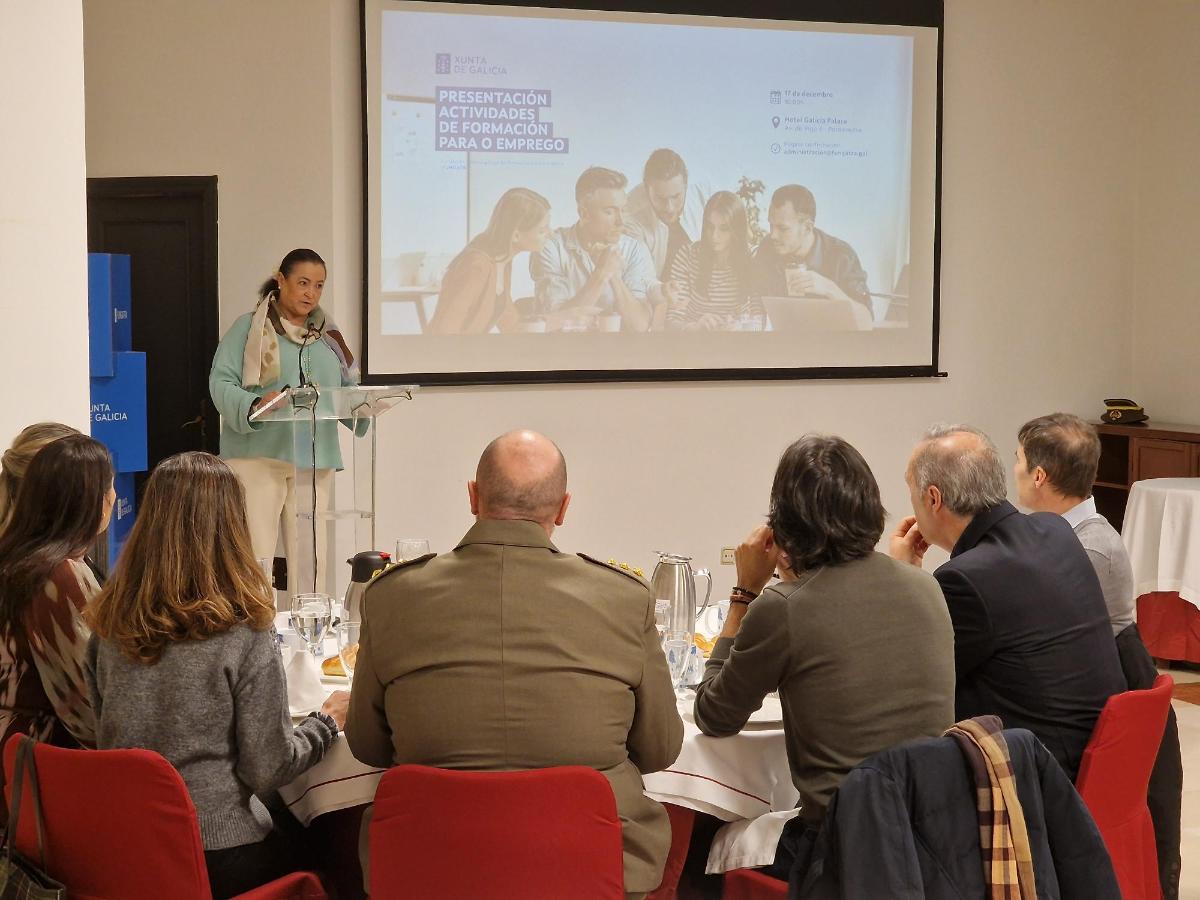 La Fundación Pública de Formación para el Trabajo presentó hoy en Pontevedra las actividades y proyectos que ha previsto desarrollar en el 2025 ante representantes de distintas entidades, empresas y organismos relacionados con el tejido empresarial así como de centros de formación y alumnado de cursos impartidos desde la Fundación Pública de Formación para el Trabajo. Con este acto, en el que participó la gerente de la entidad, Rosanna López Salgueiro, y el delegado territorial de la Xunta en Pontevedra, Agustín Reguera, se completan las presentaciones realizadas en las cuatro provincias gallegas.