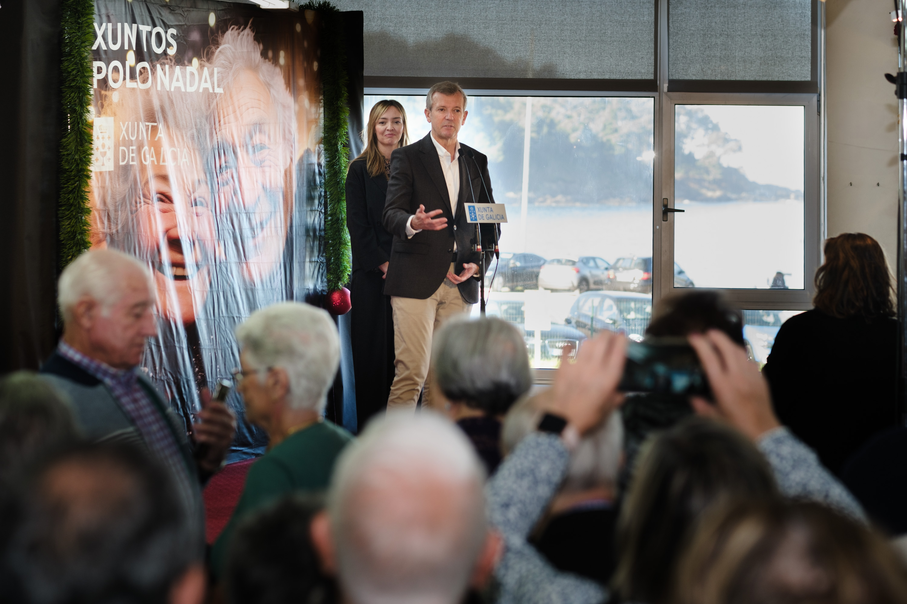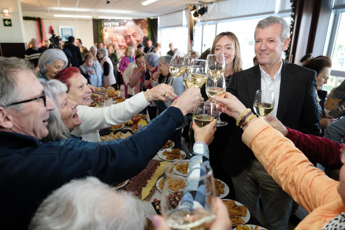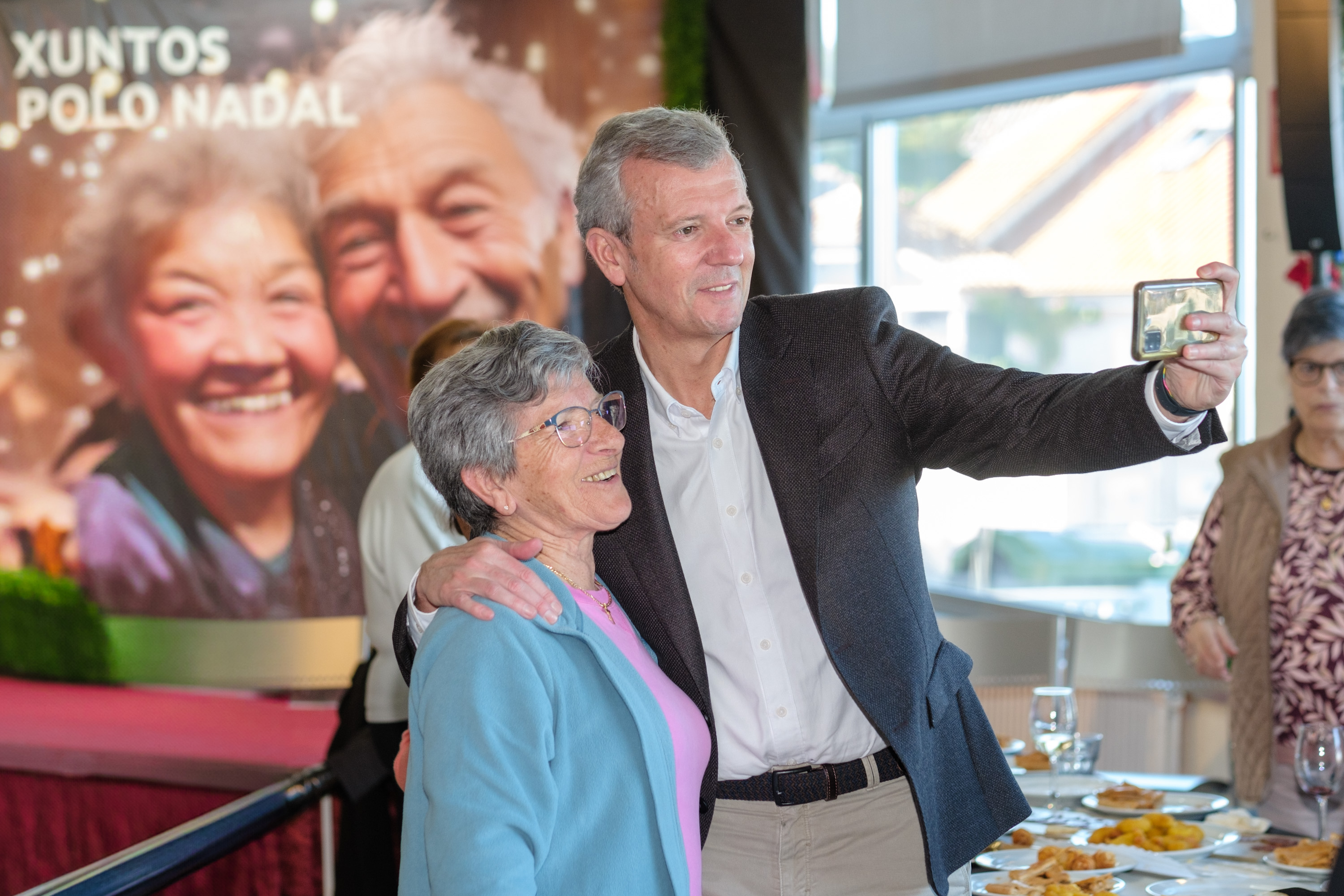 O presidente da Xunta, Alfonso Rueda, salientou hoxe o éxito do programa Xuntos polo Nadal, que este ano permite que 270 persoas maiores que viven soas desfruten destas datas acompañadas. “O que vos une a todos é as ganas de pasar as festas en compañía e pasándoo ben”, indicou o titular do Goberno autonómico.