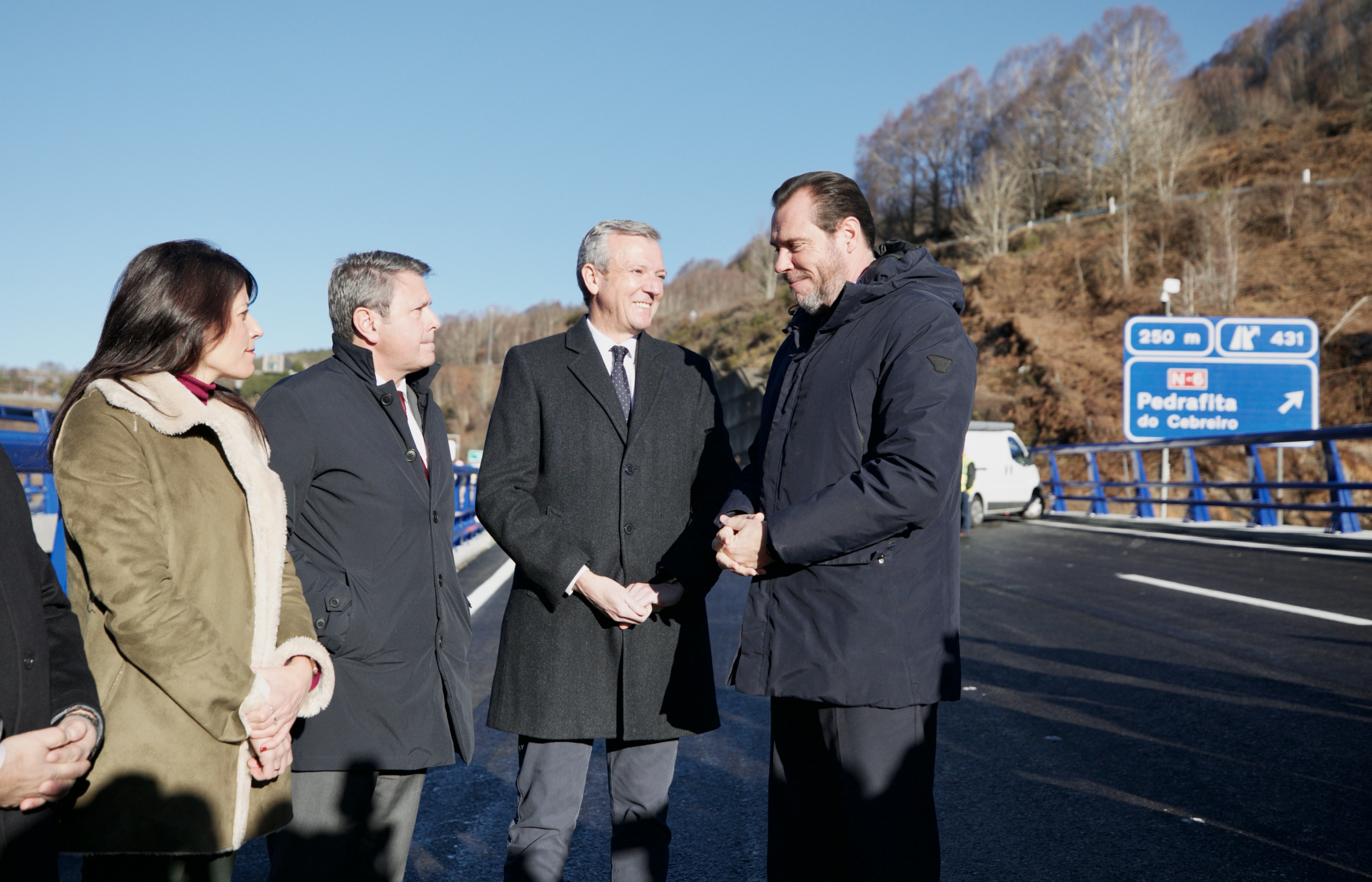 El titular del Ejecutivo gallego participó hoy en el acto de reapertura de esta infraestructura, en el que también estuvieron presentes el ministro de Transporte y Movilidad Sostenible, Óscar Puente, y el presidente de Castilla y León, Alfonso Fernández Mañueco. Rueda destacó que la puesta en marcha de este tramo supone una "buena noticia" para "los ciudadanos, los transportistas y las empresas".