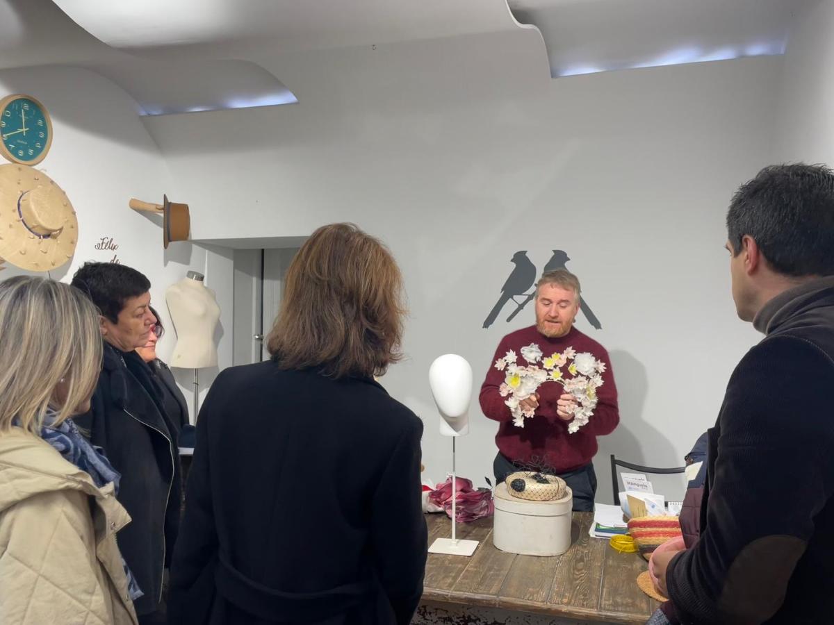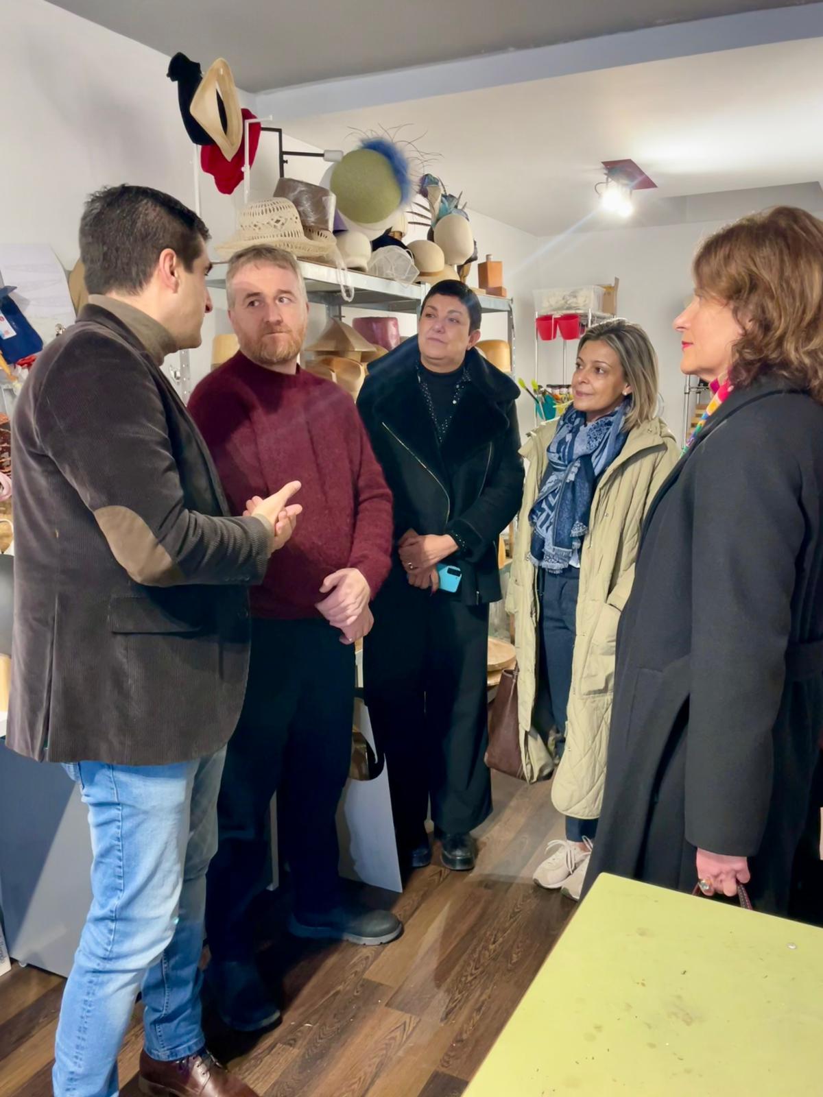 El director general de Comercio y Consumo y la gerente de la Fundación Artesanía de Galicia aprovecharon también para visitar el taller del artesano Félix de Martín, especializado en la sombrerería. Su trabajo está enfocado en el diseño y la confección de piezas de cabeza, una mezcla entre lo que los franceses denominan 'modiste du chapeau' y los ingleses llaman 'hatmaker'. Trabaja la elaboración de sombreros femeninos, que implica tareas como la confección de flores, o trabajos con plumas, entre otros, y las técnicas de sombrerería masculina más tradicional. Uno de sus pilares es la transmisión de sus conocimientos a nuevos profesionales porque cree que la normalización del uso del sombrero es proporcional al número de profesionales sombrereros, así como la única manera de que el oficio crezca y evolucione.