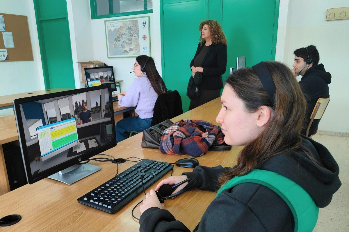 A directora xeral de FP, Eugenia Pérez, visitou hoxe o Centro Integrado de FP CIFP A Farixa, en Ourense, para supervisar o uso da ferramenta Vetinen (Vocational Training Innovative) de aprendizaxe de inglés con intelixencia artificial aplicada ás ensinanzas de Formación Profesional, unha proposta innovadora e pioneira no ámbito educativo a través da cal os alumnos poden recrear na aula situacións reais nese idioma a través cunha interface en 3D que lles permite interactuar con avatares en distintos escenarios que simulan patróns do día a día.