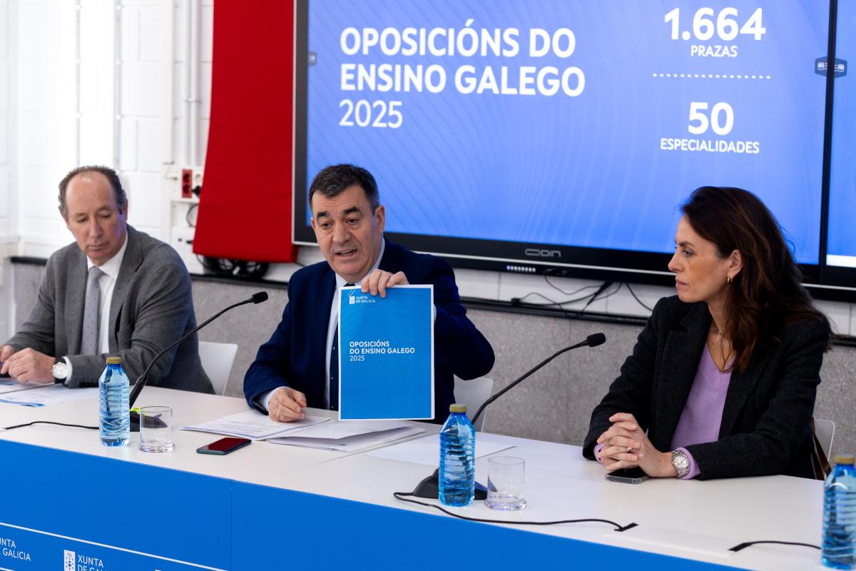 El conselleiro de Educación, Ciencia, Universidades e FP, Román Rodríguez, anunció hoy que la Xunta de Galicia va a convocar plazas en un total de 50 especialidades en las oposiciones de la enseñanza que se celebrarán en este año 2025, "una información muy esperada por los aspirantes", señaló. Tras remitir la propuesta de distribución a las organizaciones sindicales de la mesa sectorial, el titular del departamento educativo del Gobierno gallego recordó que las oposiciones cuentan con un total de 1.664 plazas, agotando la tasa de reposición marcada por normativa estatal.