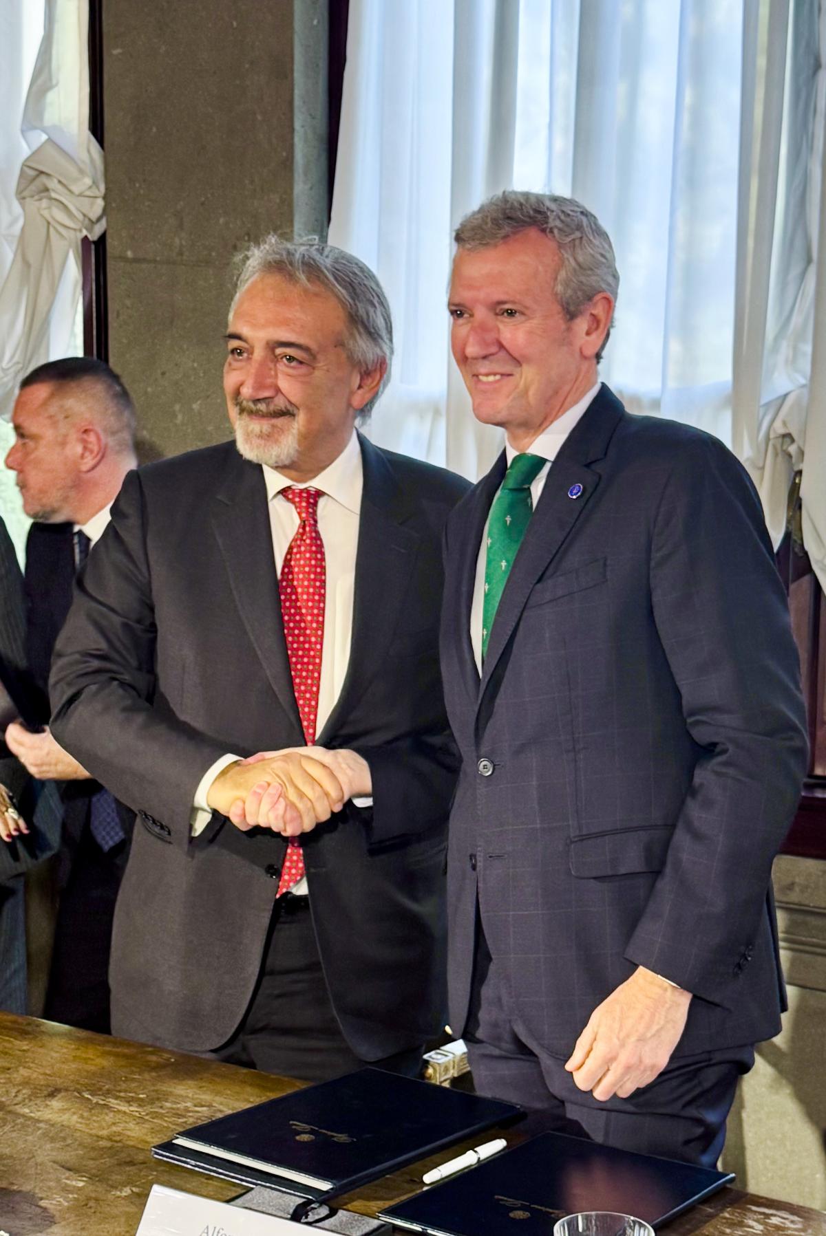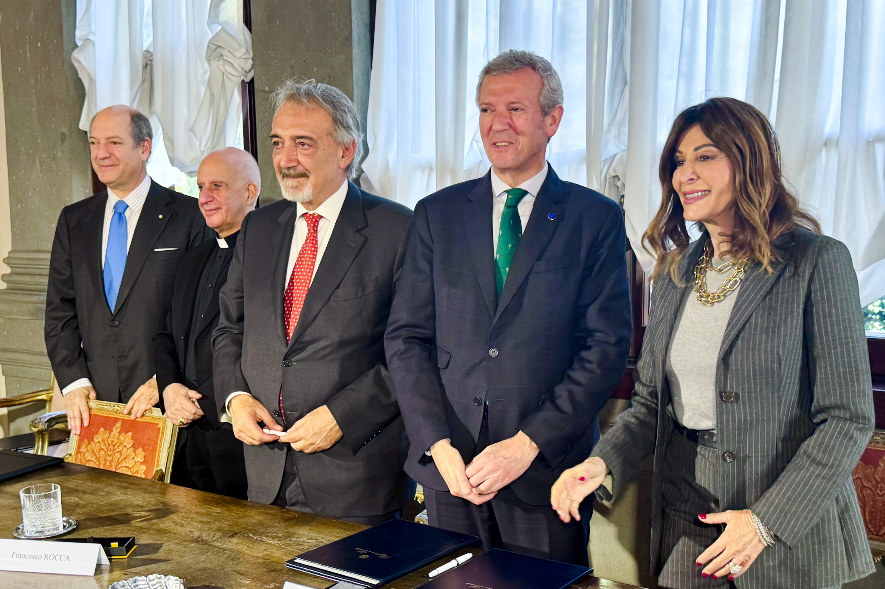O presidente da Xunta, Alfonso Rueda, e o presidente da rexión de Lazio, Francesco Rocca, asinaron hoxe un memorando de entendemento entre ambas rexións co obxectivo de desenvolver accións conxuntas no eido da promoción, investigación e formación ao redor do Camiño de Santiago e da Vía Francíxena. Unhas rutas que, en palabras do propio Rueda, son “unha manifestación relixiosa e cultural, un recurso económico de primeira orde e un exemplo de humanismo e unidade, sendo peza fundamental tamén na construción da identidade europea”.