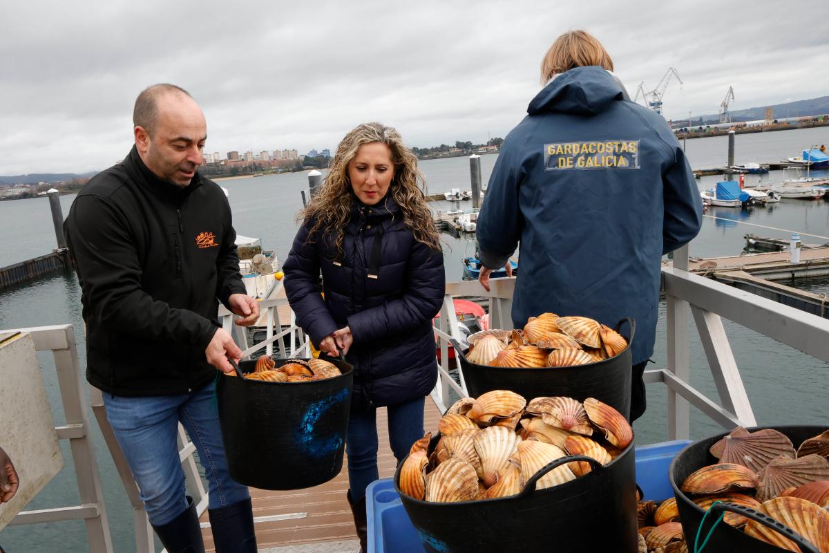 A responsable da Xunta aproveitou tamén a visita para comprobar o desenvolvemento da campaña de extracción da vieira que está a levar a cabo esta confraría e na que participan membros deste pósito e dos de Ferrol e Mugardos
