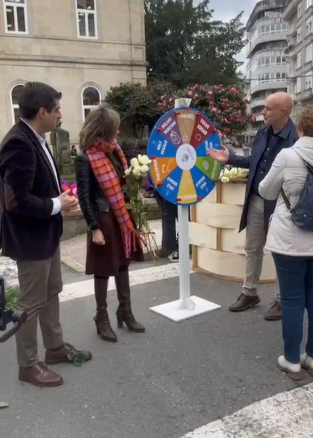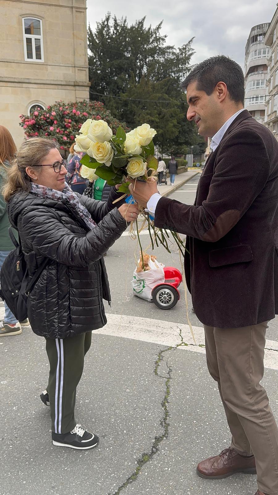 O director xeral de Comercio e Consumo, Gabriel Alén —acompañado da alcadesa de Ponteareas, Nava Castro, doutros membros da corporativa local e as presidentas das asociacións de comercio local de Ponteareas— realizou un percorrido polas rúas da localidade pontevedresa repartindo rosas en diversos establecementos co motivo da celebración promovida no Concello polo Día dos Namorados e a estrea da páxina web do comercio local ponteareán.