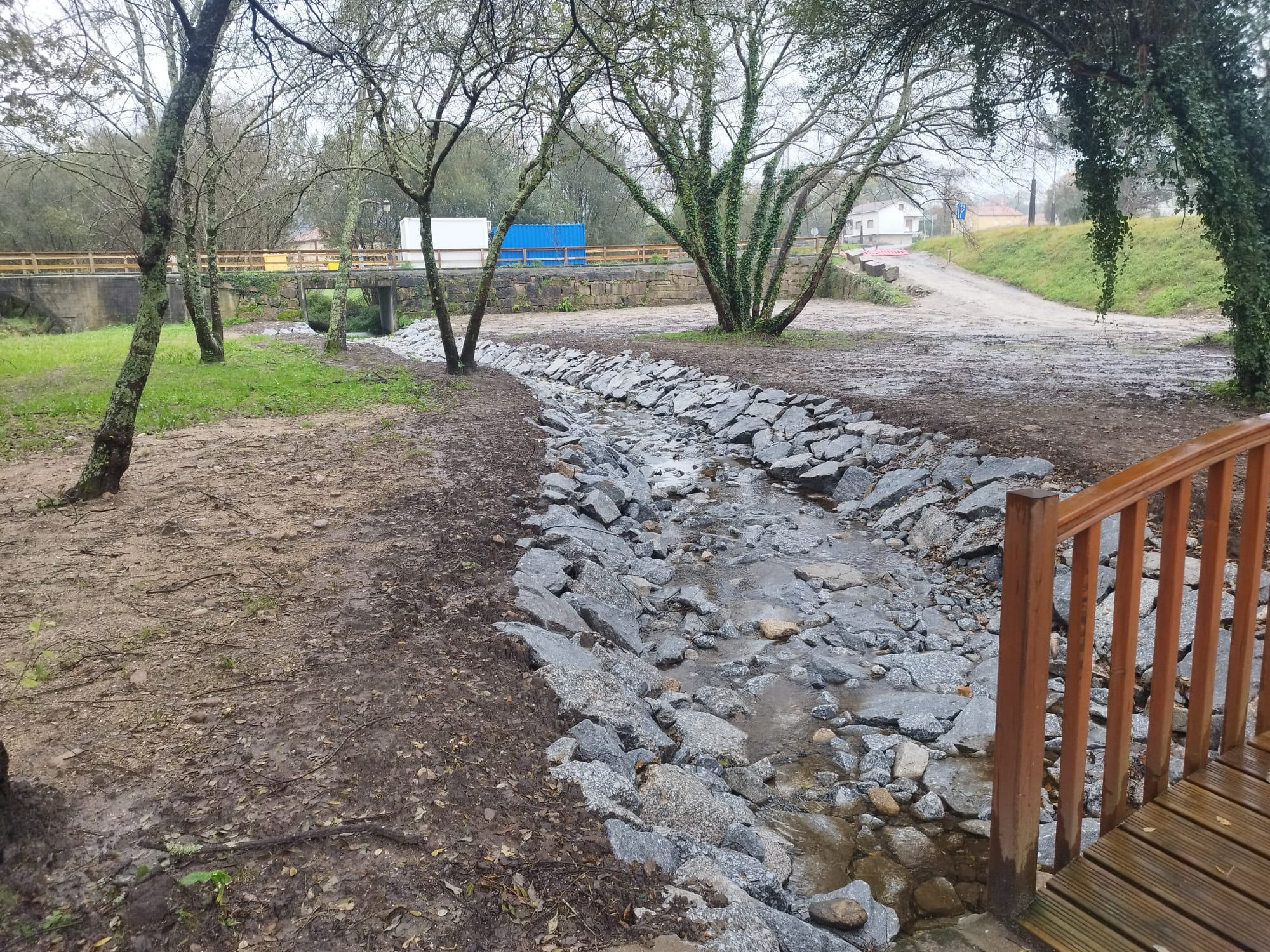 La obra también llevó aparejado el acondicionamiento del canal de un arroyo afluente del río Valga que se encuentra en la zona y la renovación de la pasarela peatonal de madera que lo cruza. El objetivo de estas actuaciones es reducir tanto las erosiones como los atascamientos del canal y facilitar así la circulación fluida de las aguas.