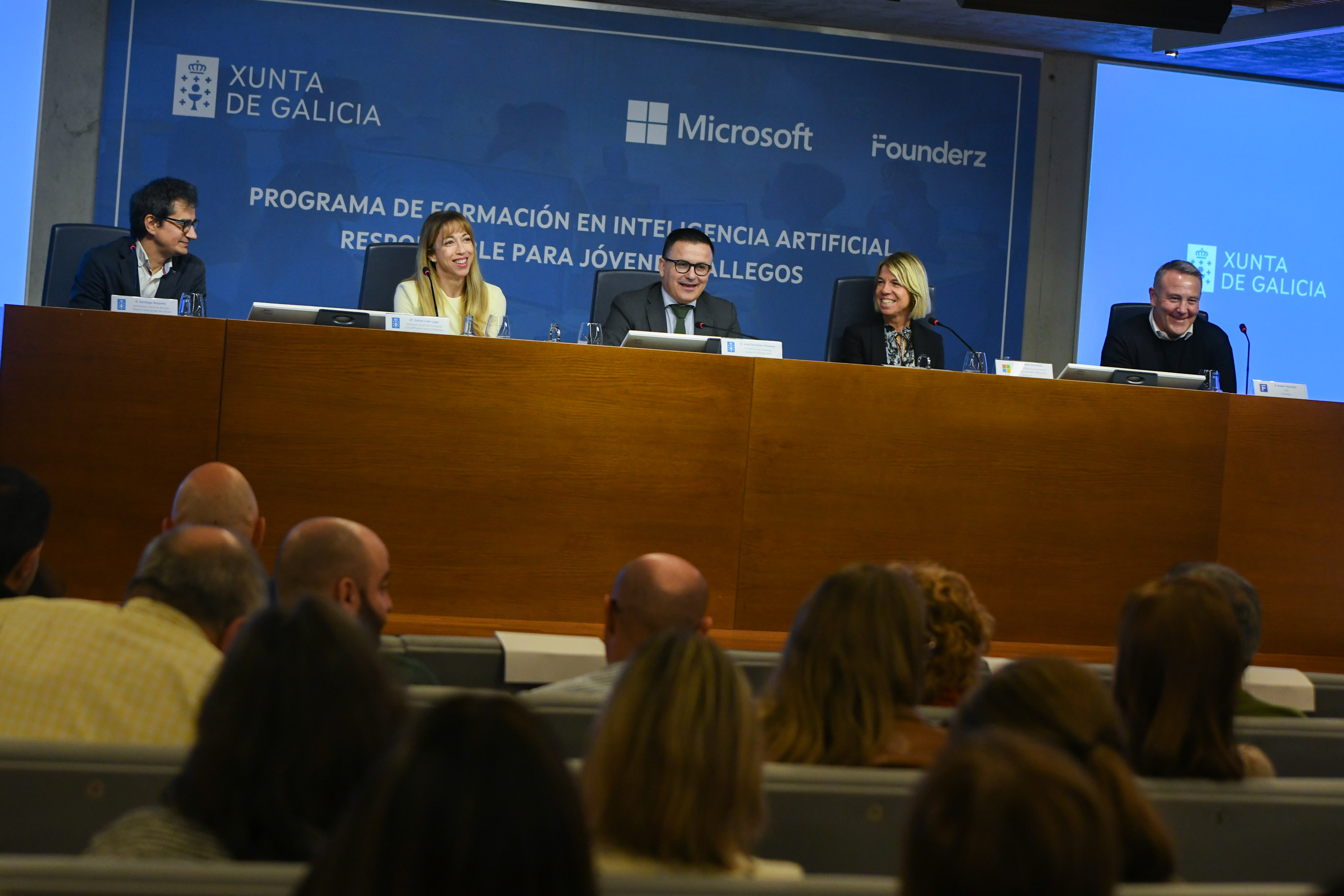 Ademais, no evento de hoxe -no que tamén estiveron a directora xeral de Formación e Cualificación para o emprego, Zeltia Lado, o director do Centro de Novas Tecnoloxías, Carlos Vázquez, e o director xeral de Seguridade da Información e cofundador de Founderz, Rubén Iturrarte, entre outros- o conselleiro destacou a experiencia de Microsoft e Founderz -entidade que proporcionará a formación- nesta materia pois no 2023 lanzaron o curso de formación en IA máis grande de Europa.