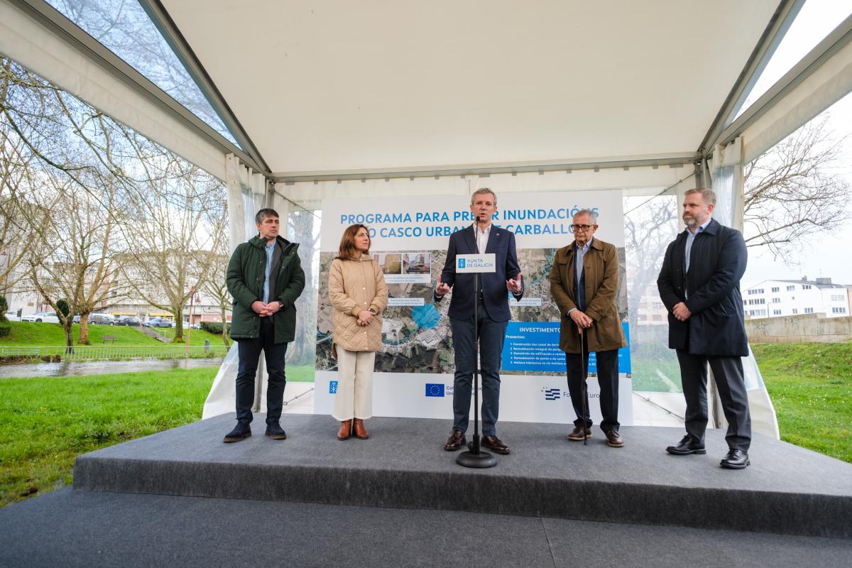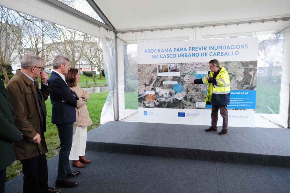 O presidente da Xunta, Alfonso Rueda, destacou hoxe os máis de 6,3 millóns de euros que o Goberno autonómico destina a actuacións para reducir o risco de inundacións en Carballo. Salientou que estas obras van supoñer “un antes e un despois” e unha mellora “significativa” da seguridade nunha vila afectada en varias ocasións polo asolagamento do río Anllóns.