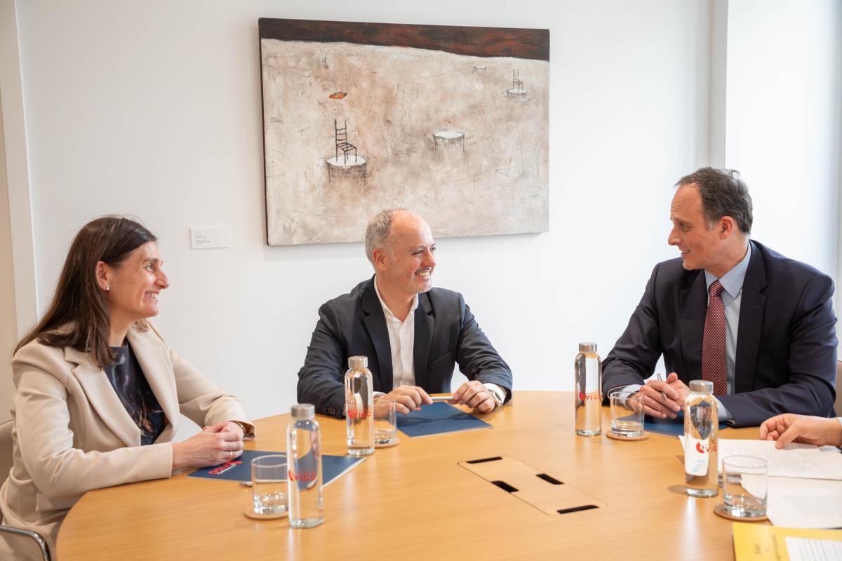 A directora xeral de Estratexia Industrial e Solo Empresarial, Margarita Ardao, o presidente da Autoridade Portuaria de Vigo, Carlos Botana, e o delegado especial do Consorcio Zona Franca, David Regades, asinaron hoxe a compravenda de nove parcelas na Plataforma Loxística e Industrial de Salvaterra–As Neves (Plisan) para poñer a disposición do tecido da área empresarial de Vigo preto de 42.000 m² e dar así resposta á alta demanda de solo.