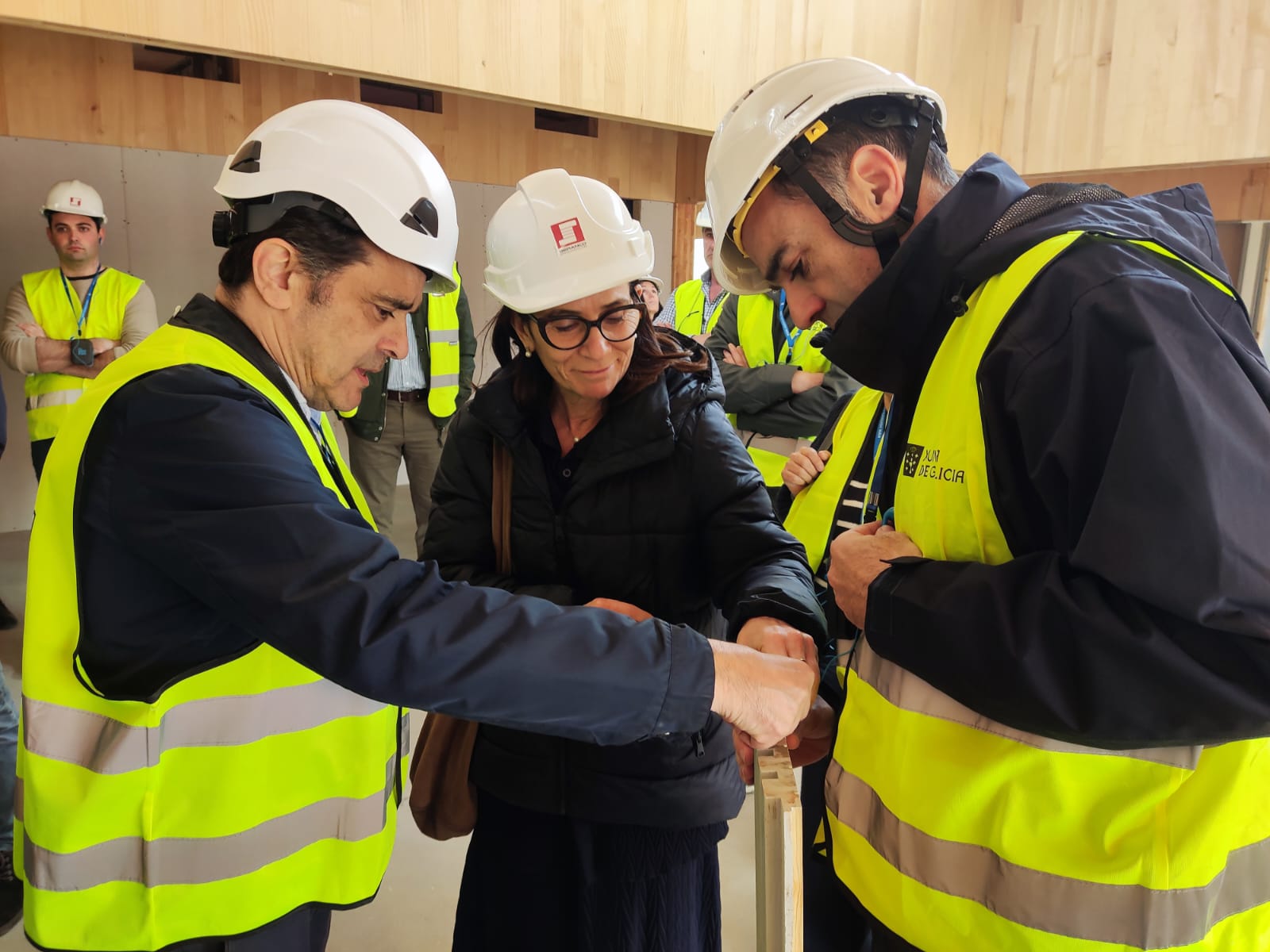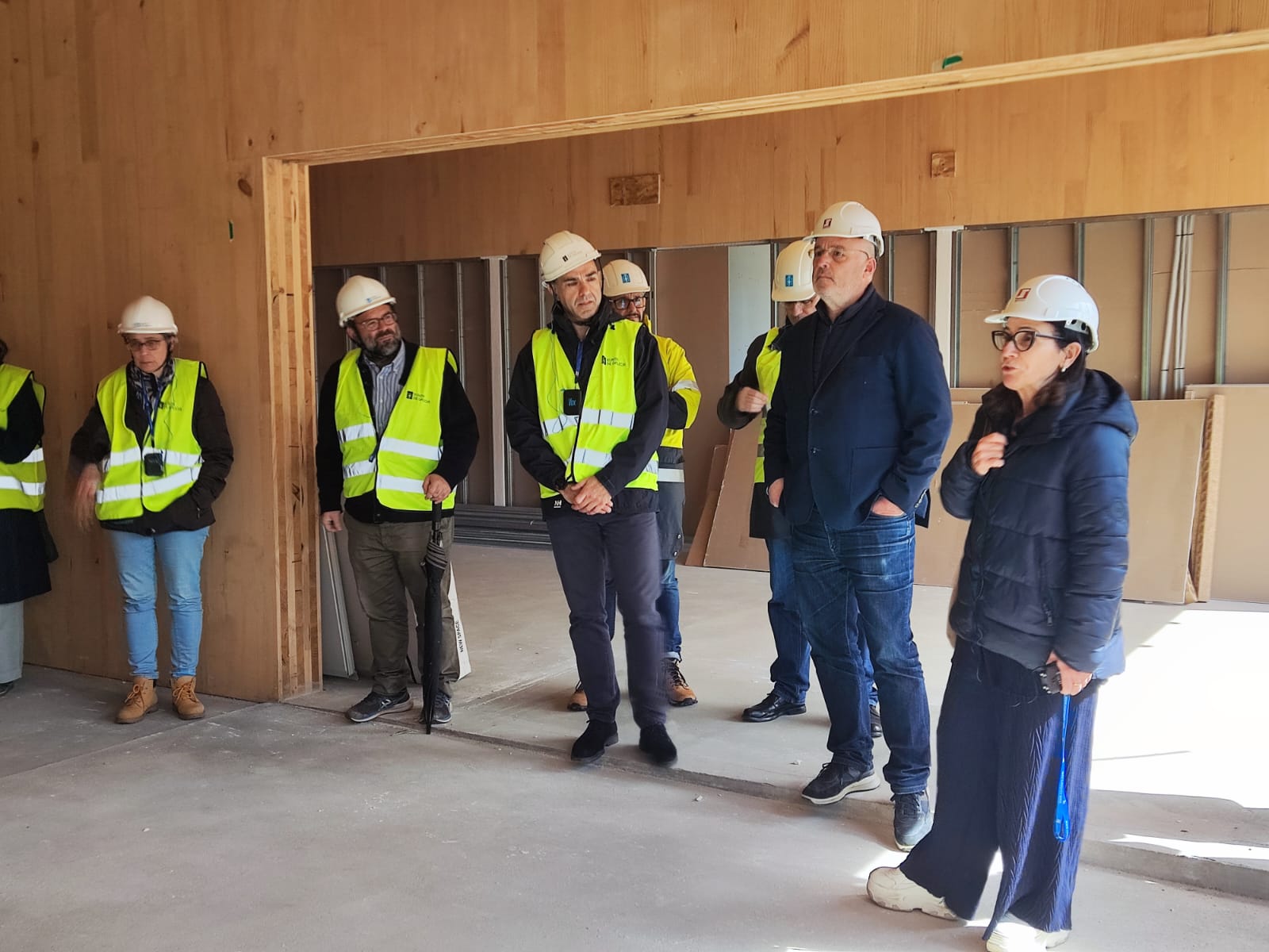Fernández Ríos acompañou ao alumnado do curso Madeira estrutural. Bases e sistemas construtivos, nas visitas á empresa Xilonor, fabricante de madeira contralaminada (CLT) de piñeiro 100% galego, e provedora deste elemento construtivo no novo centro de saúde de Abegondo, unha edificación en construción promovida polo Sergas e a Axencia Galega de Infraestruturas (AXI) e que tamén foi visitada hoxe.
