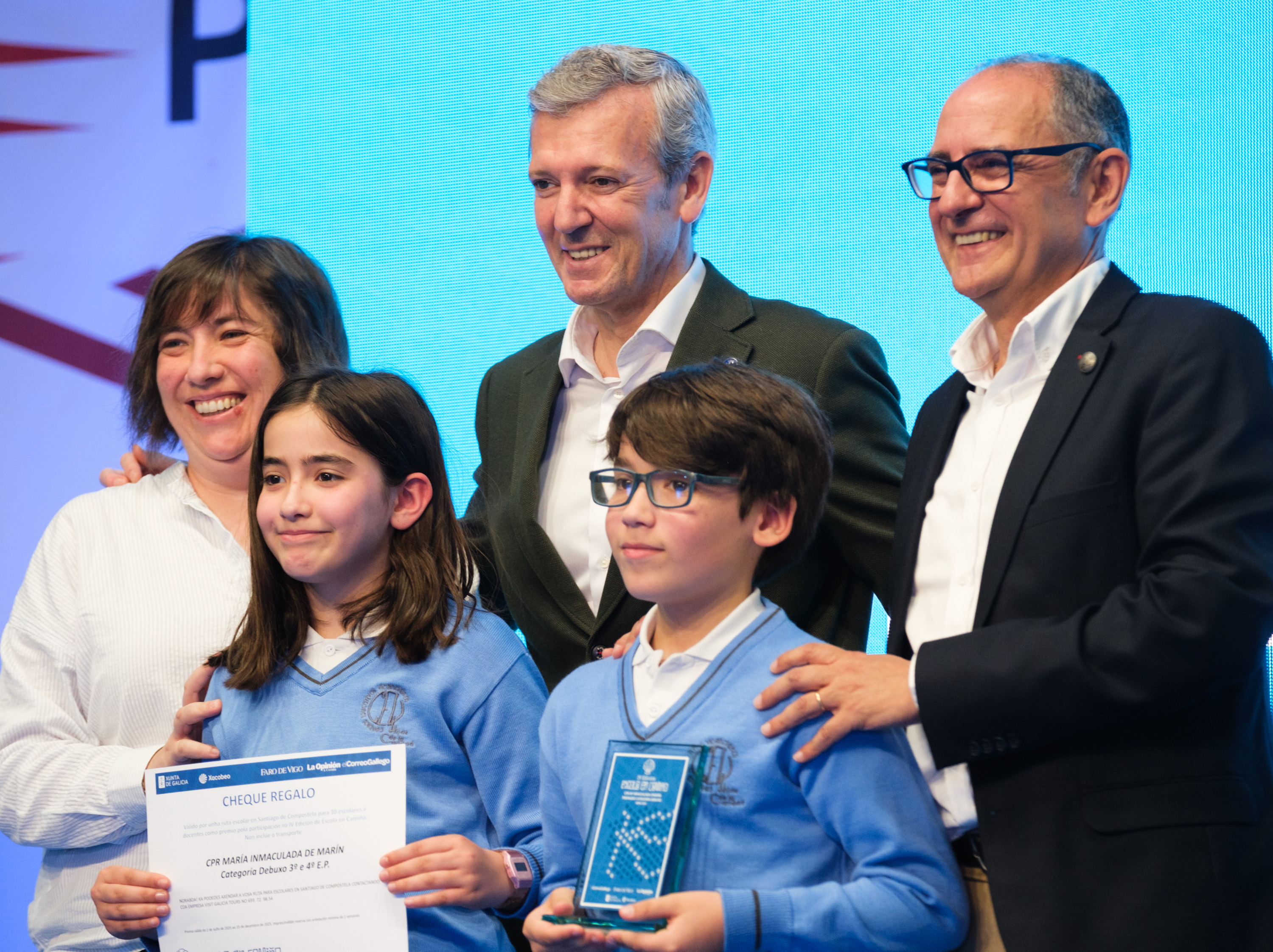 El presidente de la Xunta, Alfonso Rueda, participó hoy en el acto de entrega de los IV Premios Escola en Camiño, un certamen convocado por Prensa Ibérica que busca acercar a los más jóvenes a la riqueza cultural, histórica y humana del Camino de Santiago. En el encuentro, en el que estuvieron presentes alumnos, docentes y familias, el presidente destacó que "esa Galicia Calidade que queremos llevar a todas partes tiene en el Camino una de sus mayores expresiones".