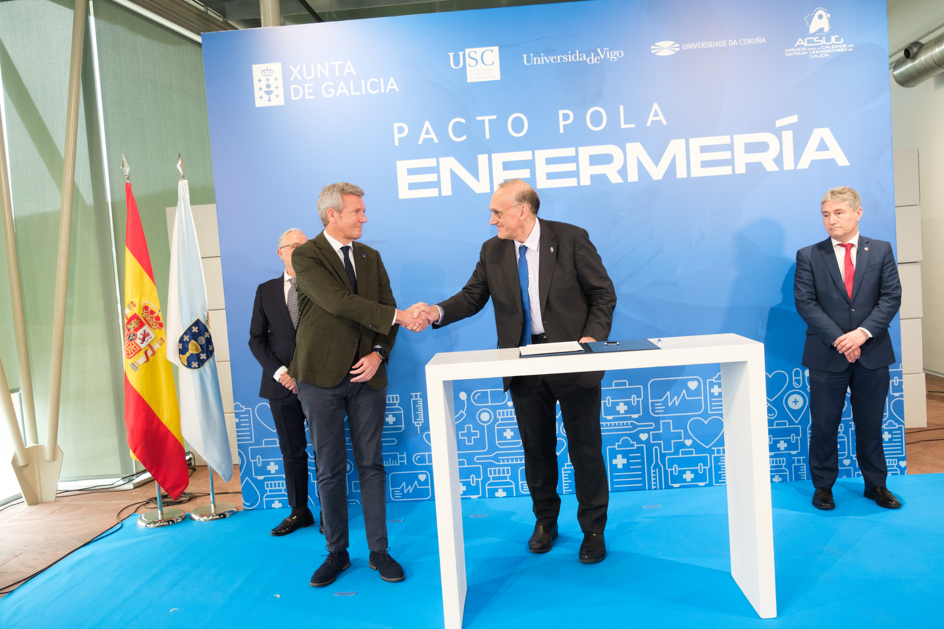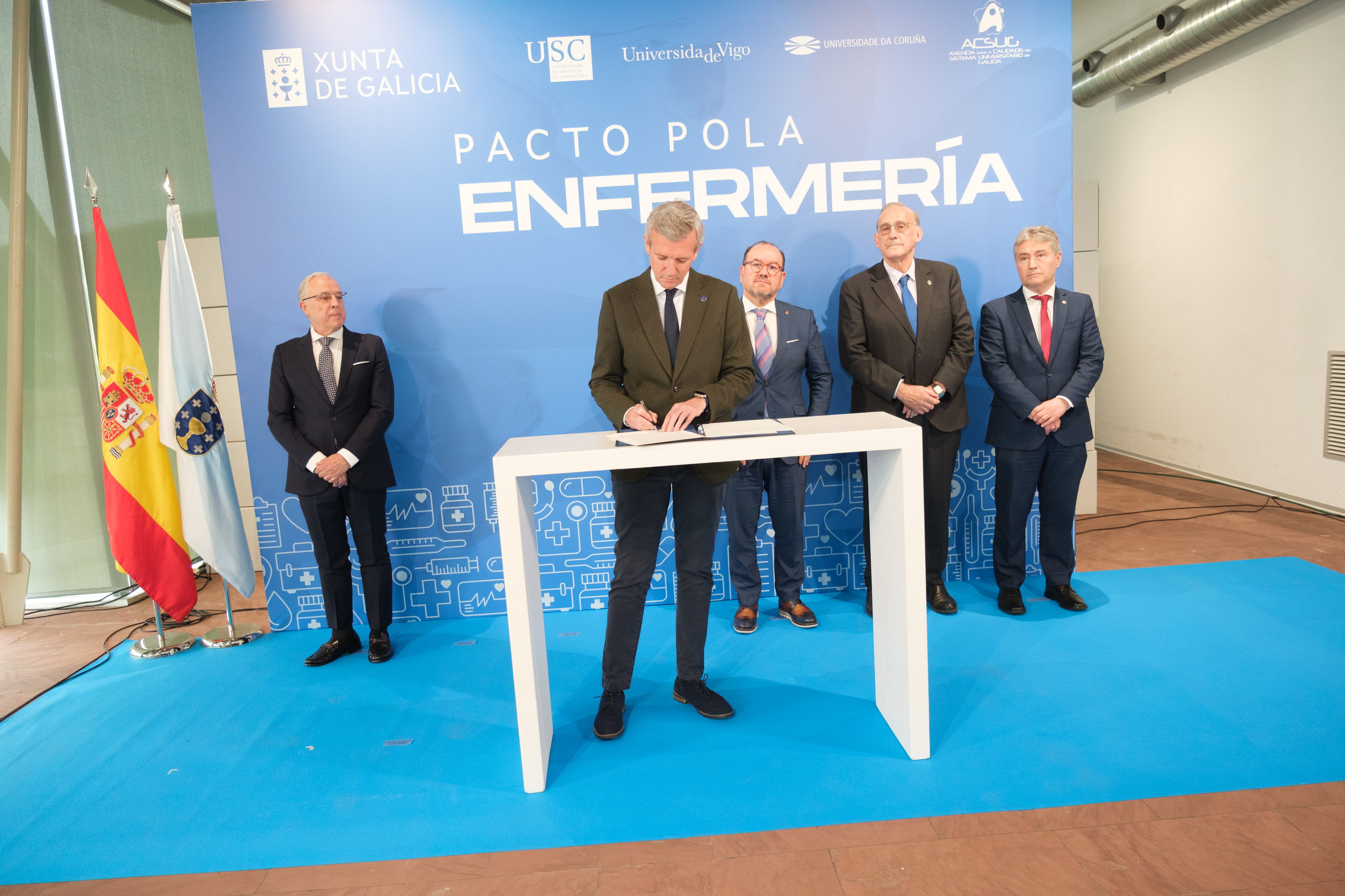 Rueda firma un pacto por la Enfermería entre la Xunta y las universidades públicas gallegas para mejorar la formación y reforzar el sistema sanitario