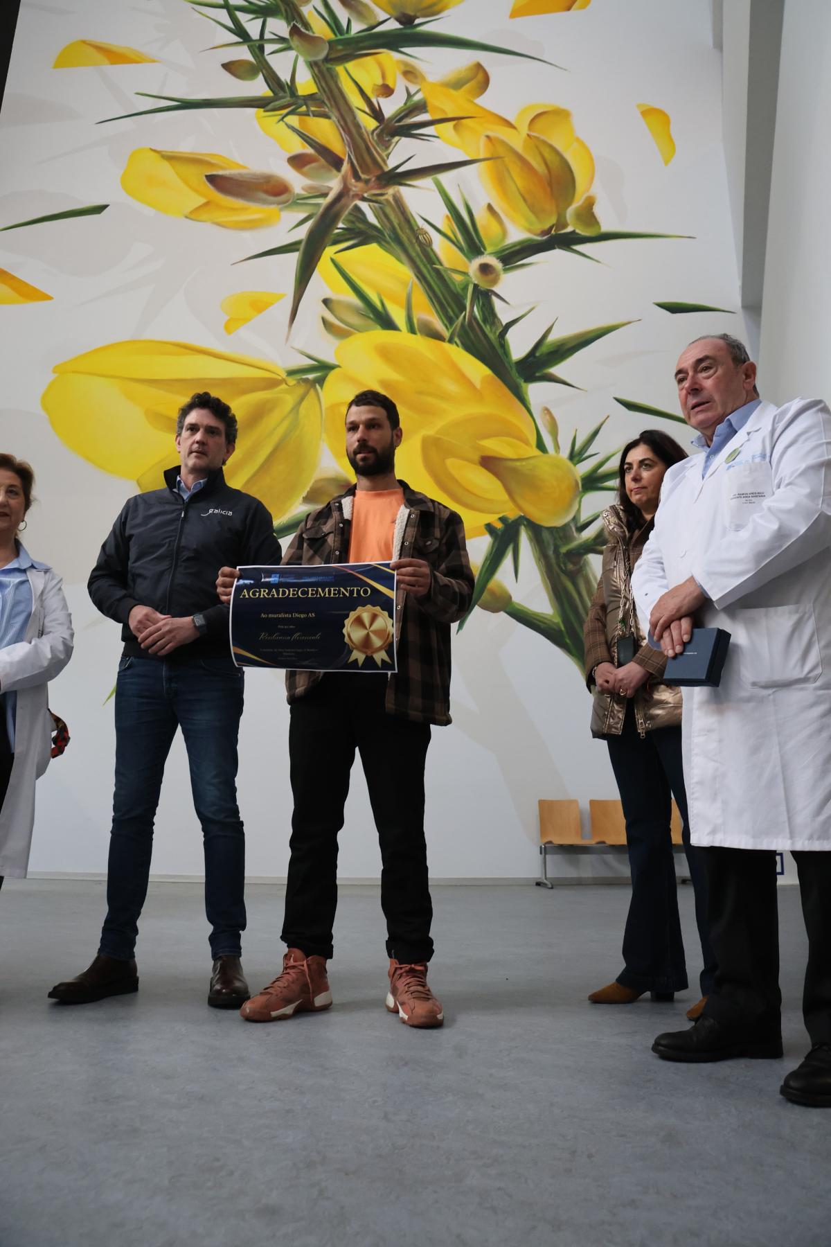 O delegado territorial da Xunta, Javier Arias, sumouse hoxe ao acto de agradecemento a Diego As polo mural que pintou no interior do Hospital Universitario Lucus Augusti (Hula), unha flor de toxo a gran escala que simboliza a resiliencia. A obra, denominada Resiliencia Floreciente, está nun espazo moi visible e pode admirarse dende todas as plantas.