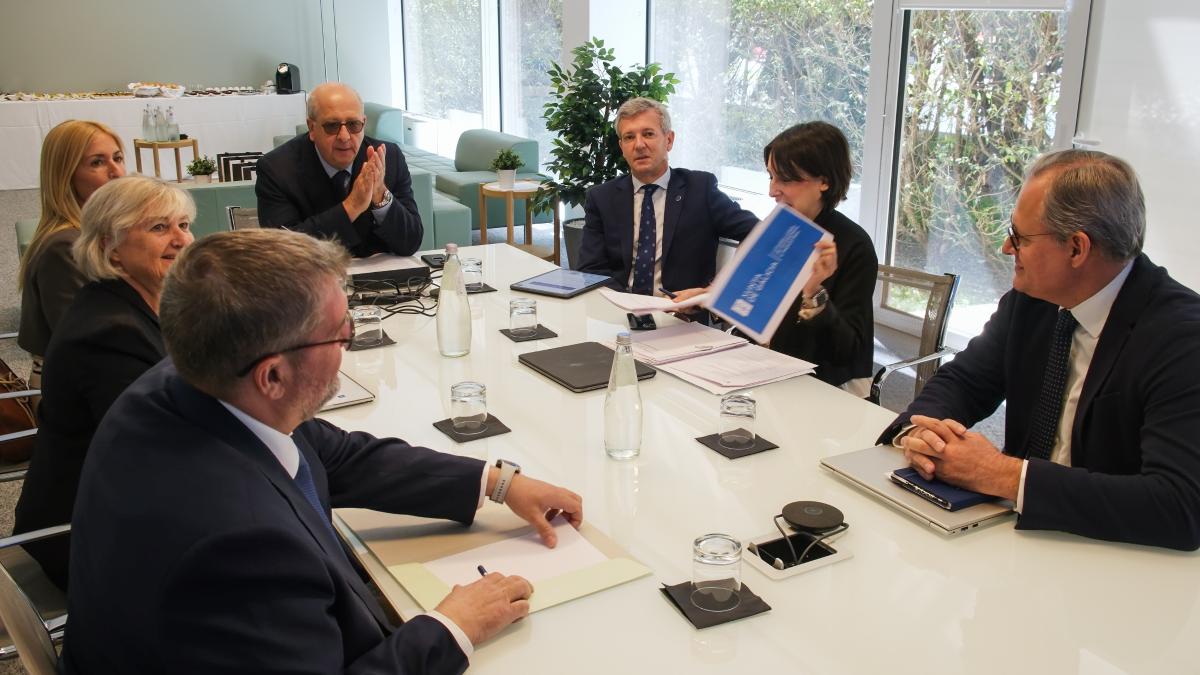 O presidente da Xunta, acompañado pola conselleira de Economía e Industria, María Jesús Lorenzana, mantivo hoxe un encontro co director de Operacións da Rexión Europa Extendida de Stellantis, Jean-Philippe Imparato