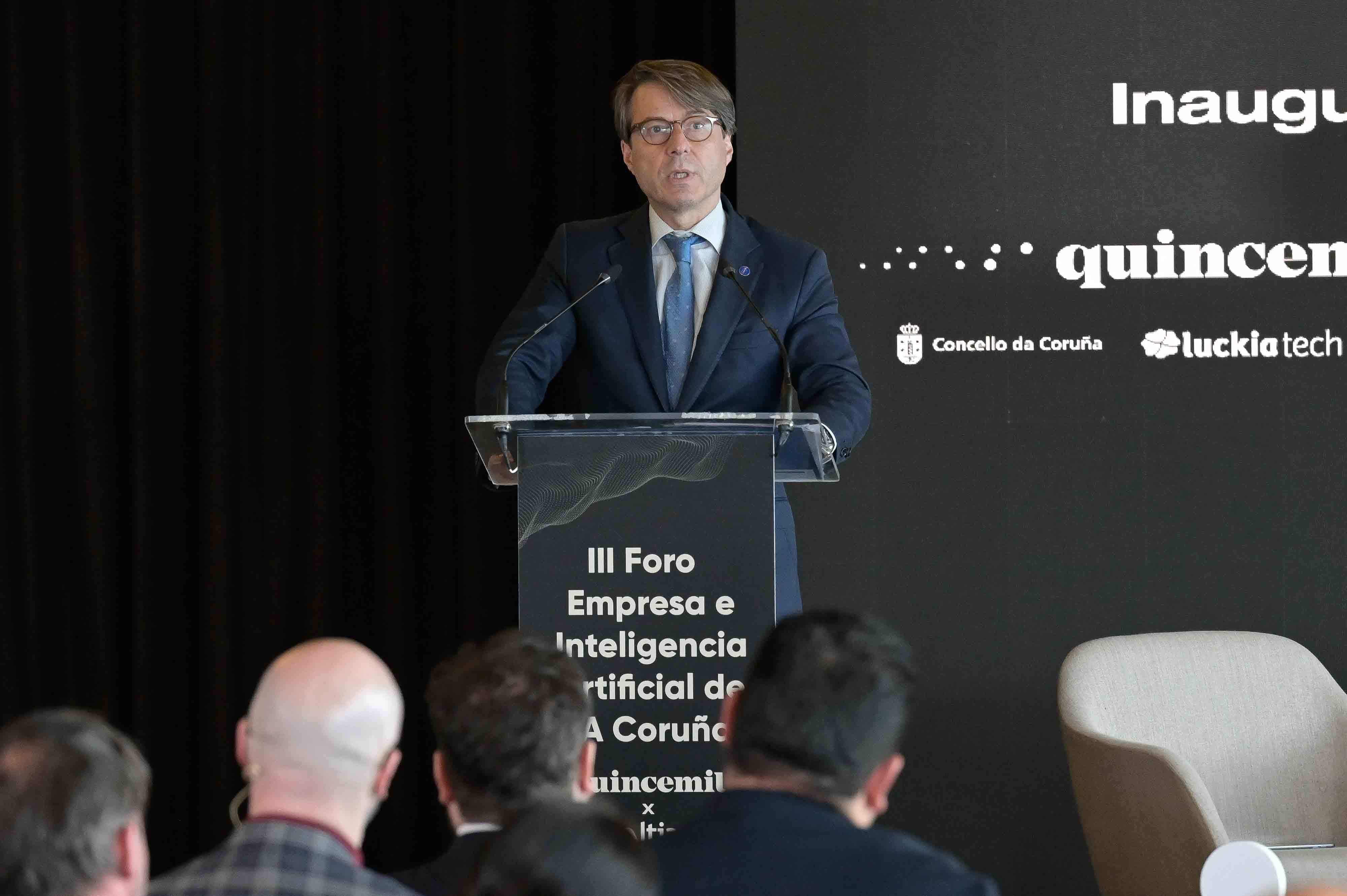 Durante la inauguración del III Foro Empresa e Intelixencia Artificial, organizado por Quincemil, Corgos destacó el esfuerzo que está haciendo la Xunta para desarrollar la Lei de IA, aprobada recientemente en el Parlamento gallego.
