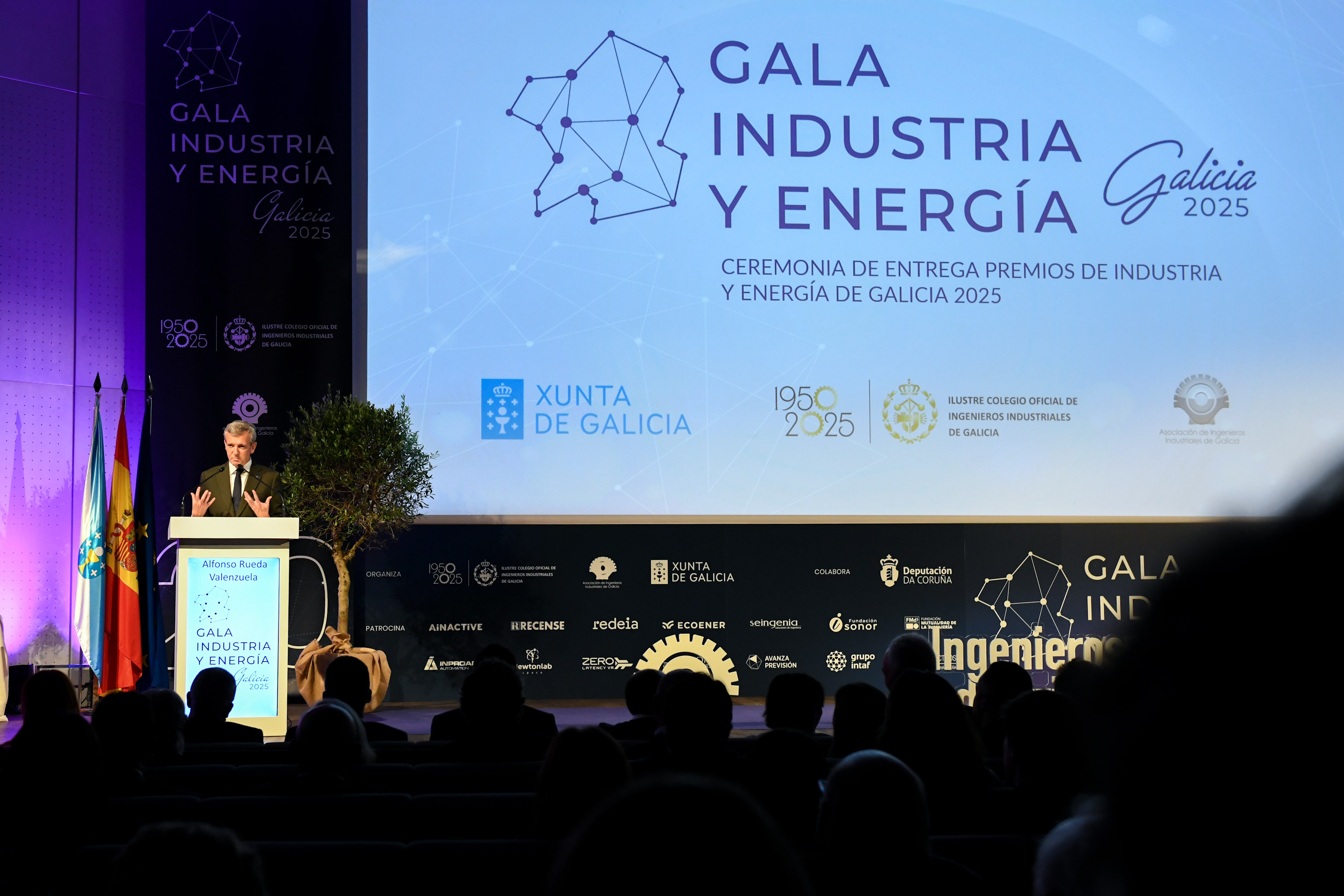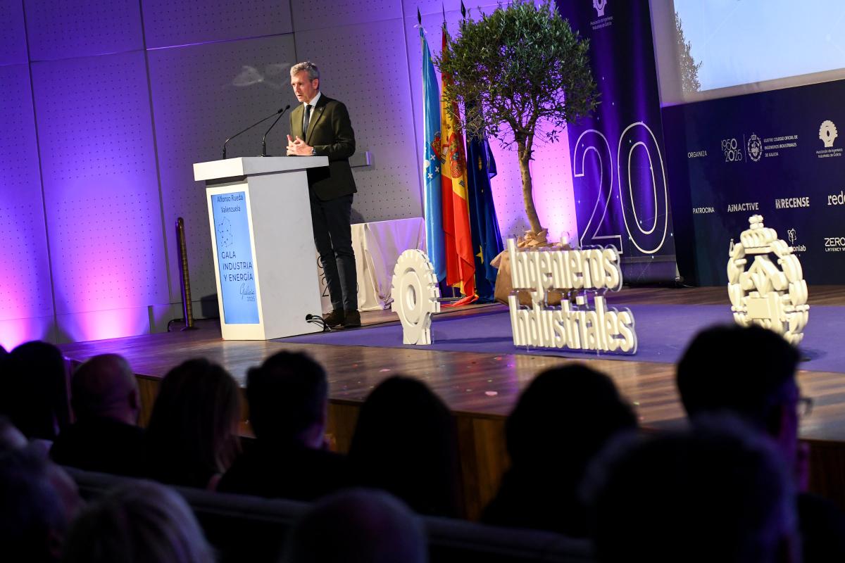 O presidente da Xunta, Alfonso Rueda, participou hoxe na cerimonia de entrega dos XI Premios da Industria e Enerxía de Galicia, un evento organizado polo Colexio de Enxeñeiros Industriais de Galicia e a súa asociación profesional.
