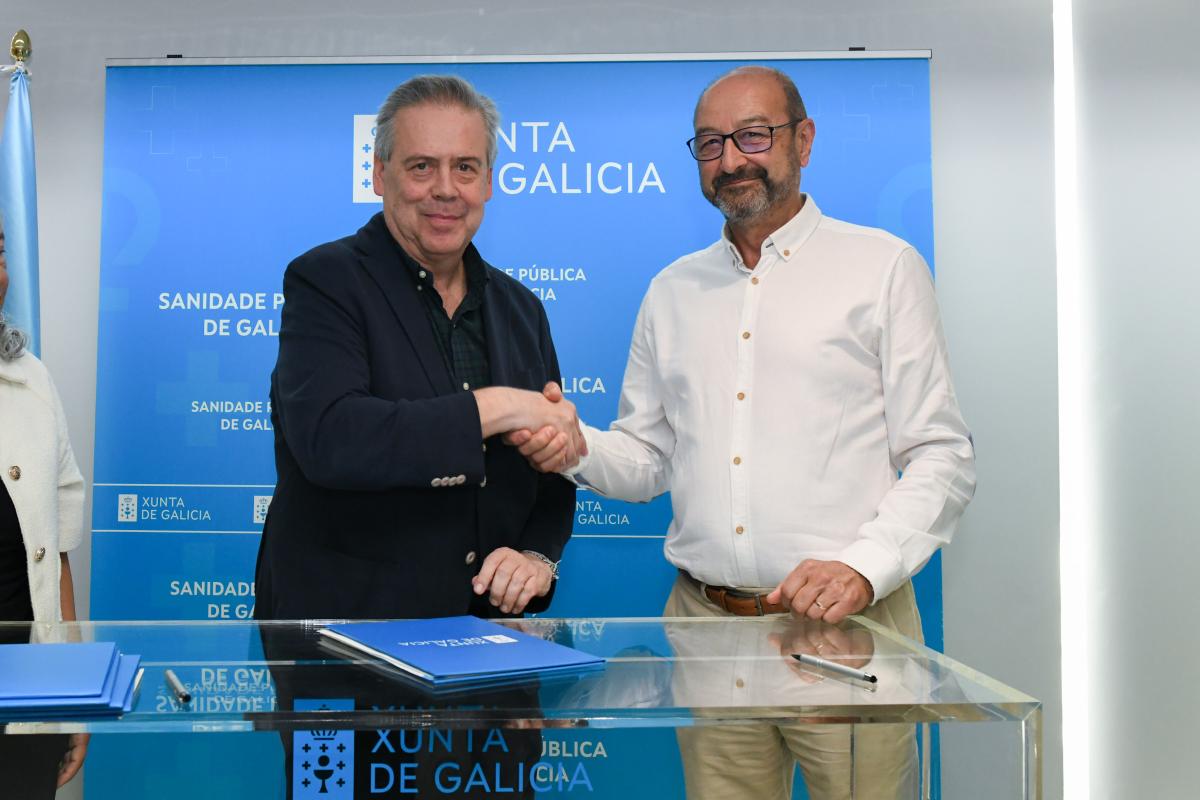 El conselleiro de Sanidade, junto con la directora xeral de Recursos Humanos do Servizo Galego de Saúde, Mar Pousa, firmó los convenios de colaboración con los presidentes de las asociaciones Fademga, Aspace y Down Galicia