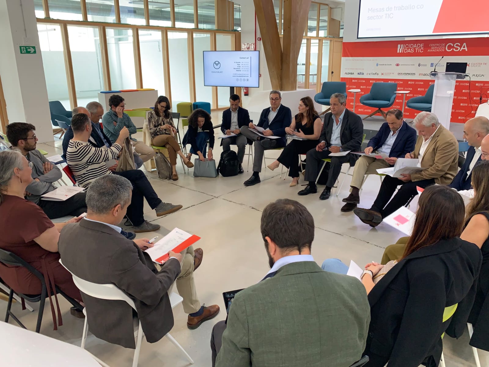 O secretario xeral de Industria e Desenvolvemento Enerxético, Nicolás Vázquez, e a directora xeral de Estratexia Industrial e Solo Empresarial, Margarita Ardao, asistiron a unha sesión de traballo co Clúster TIC